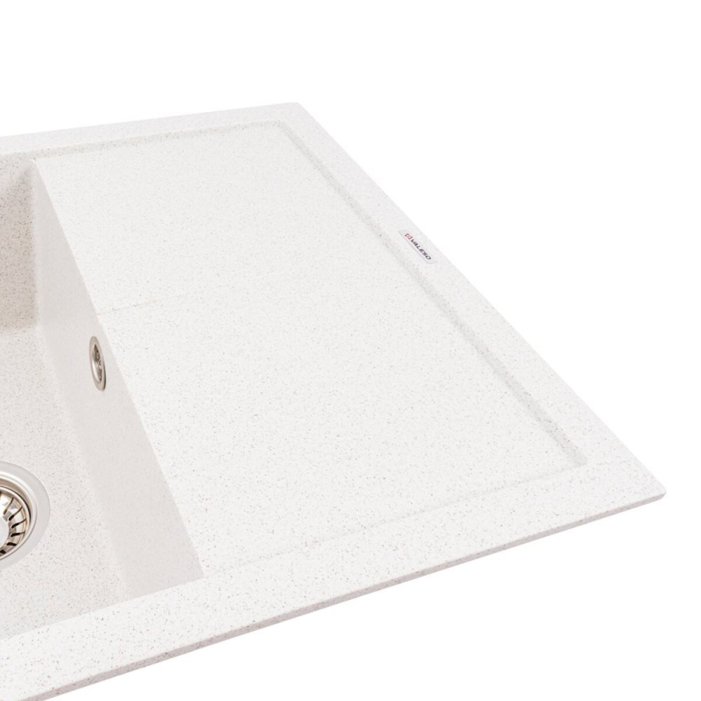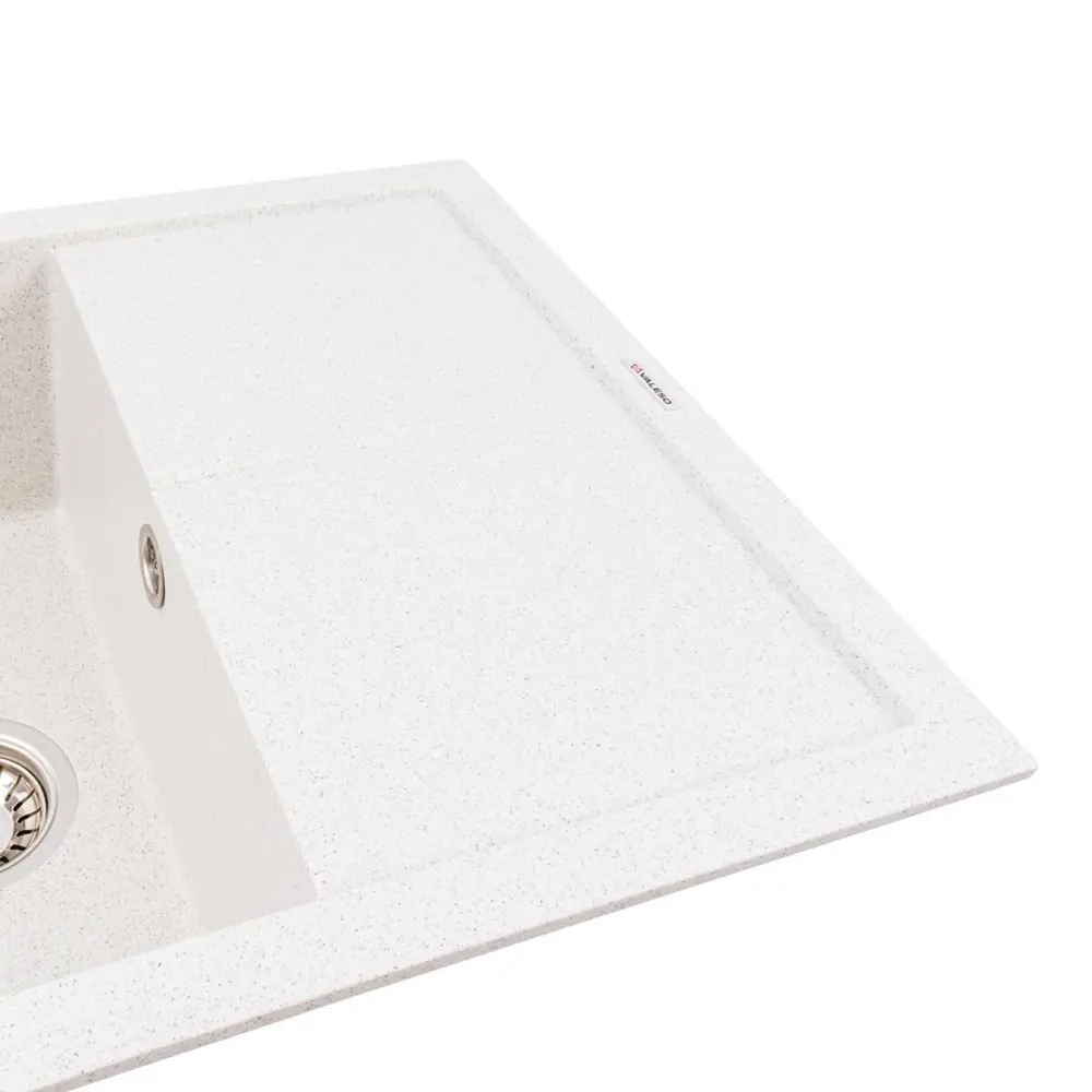 Мойка изготовлена из искусственного камня высокой плотности. Материал устойчив к влаге, температурным перепадам и механическим повреждениям. За поверхностью легко ухаживать — она сохраняет эстетичный вид даже при интенсивной эксплуатации.
