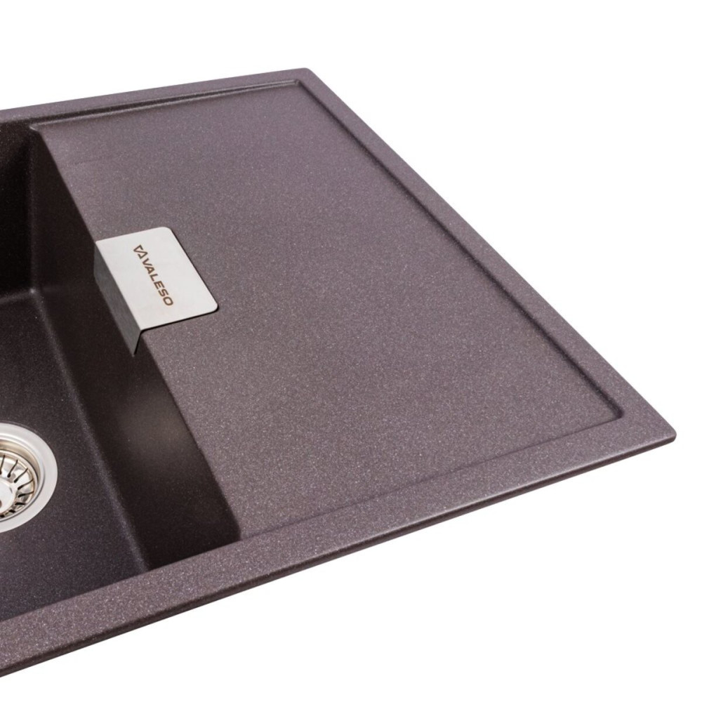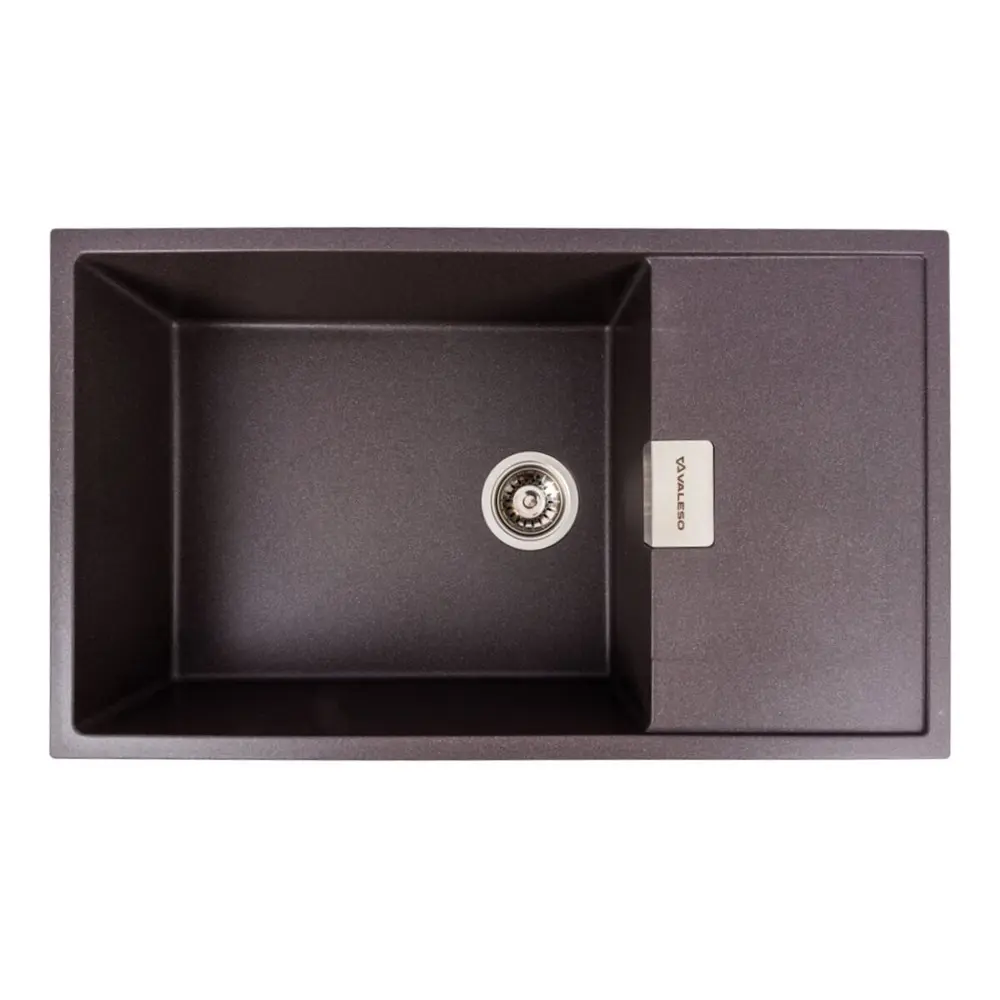 Гранитная мойка для кухни 8650 DIAMOND украинского бренда VALESO – это стильная, врезная, прямоугольная мойка, которая своим видом прекрасно дополнит дизайн вашей кухни. Мойка на 80% состоит из кварца и на 20% из очень жесткой акриловой смолы, благодаря чему неприхотлива в уходе, а также имеет большой запас прочности. Размеры чаши, 545х450х185 мм, делают ее очень вместительной и удобной в использовании. Мойка имеет матовую фактуру и приятный для глаза цвет позволяющий ей легко вписаться в интерьер кухни. Мойка изготовлена в Украине из качественного немецкого сырья по технологии Solid Surface с соблюдением всех необходимых стандартов.