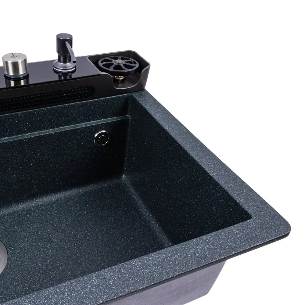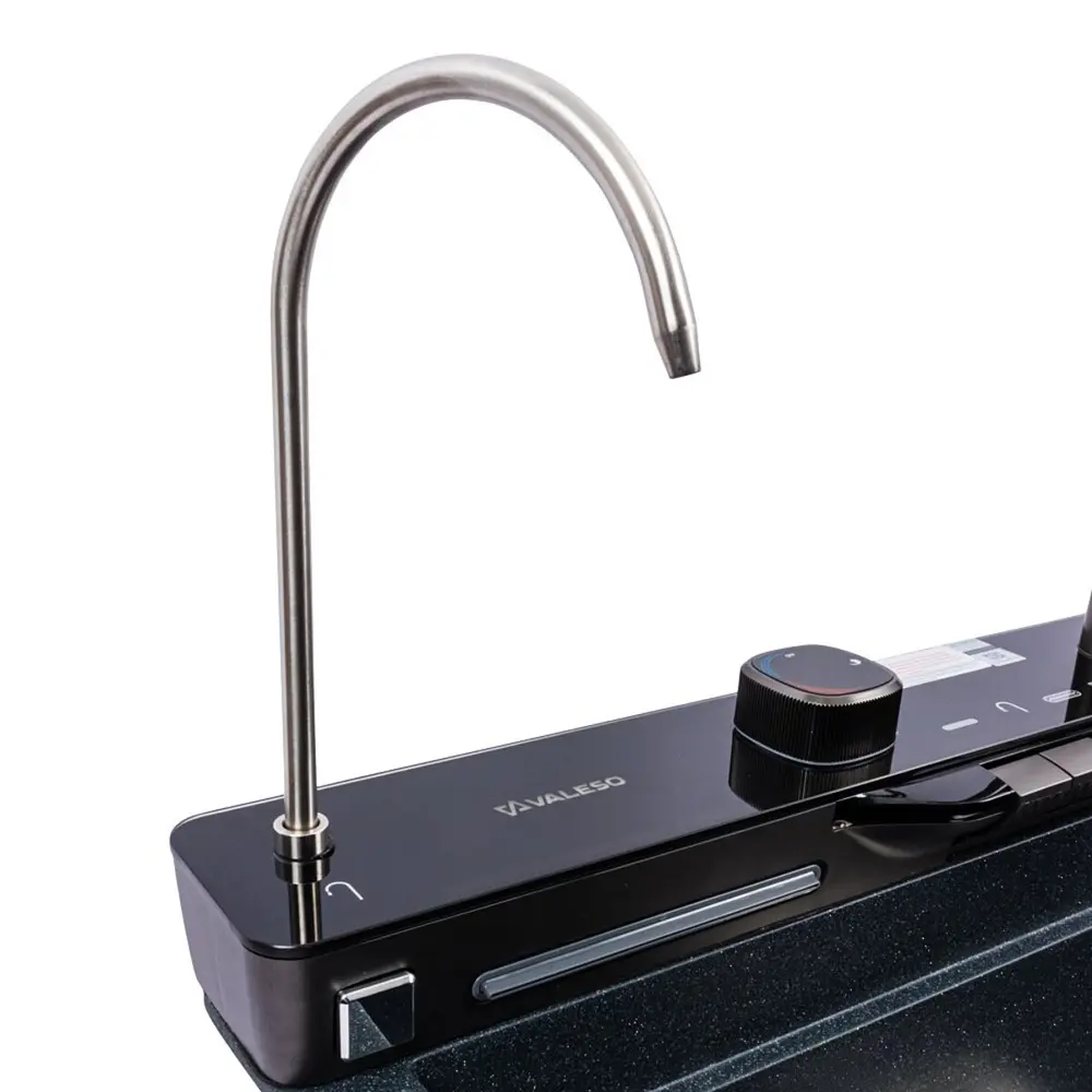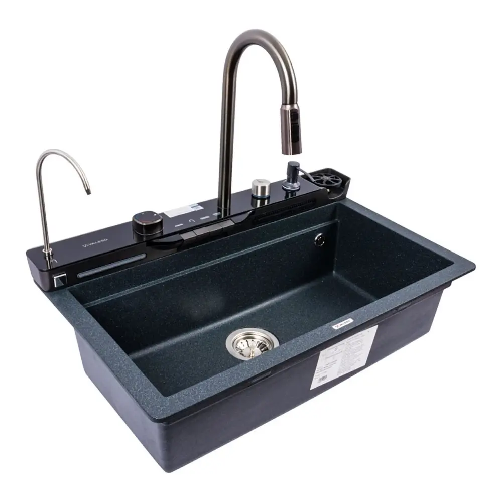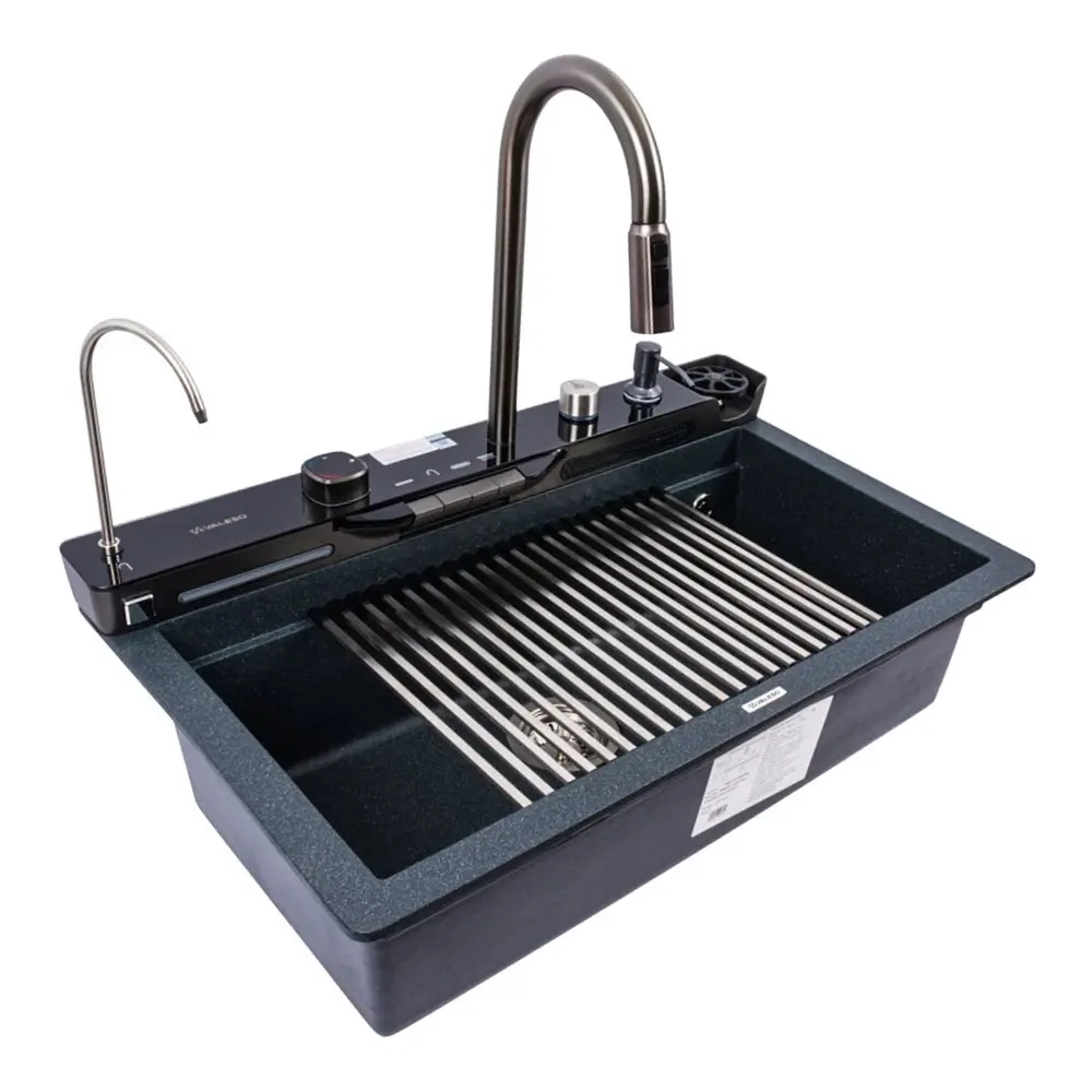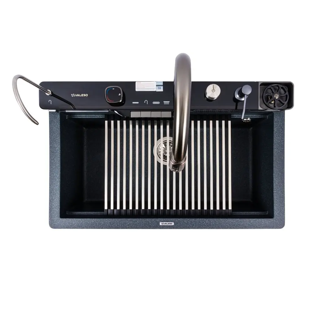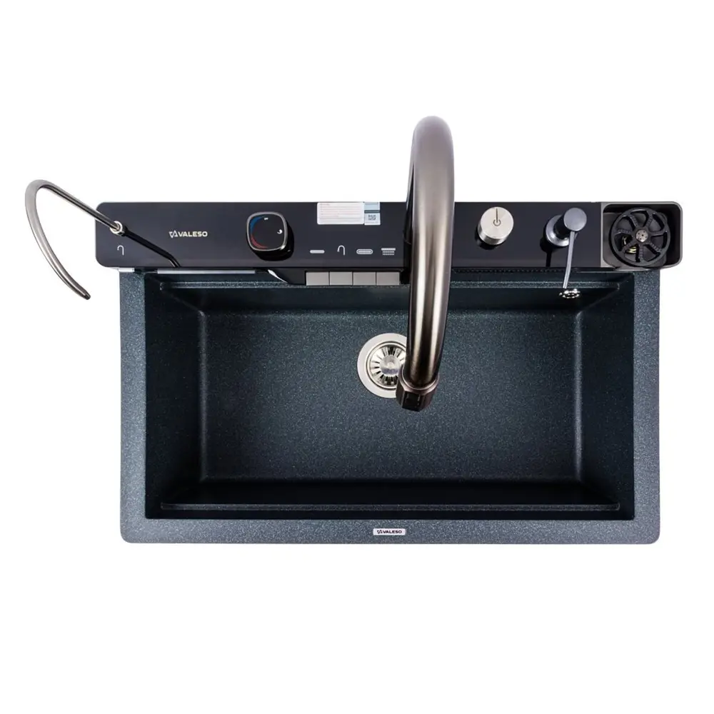 Гранитная мойка VALESO 7546 EVANORA в цвете антрацит — это не просто мойка, а полноценная интегрированная кухонная рабочая станция, воплощающая роскошь, инновации и функциональность. Её матовая поверхность и глубокий антрацитовый оттенок подчёркивают современный, премиальный дизайн.