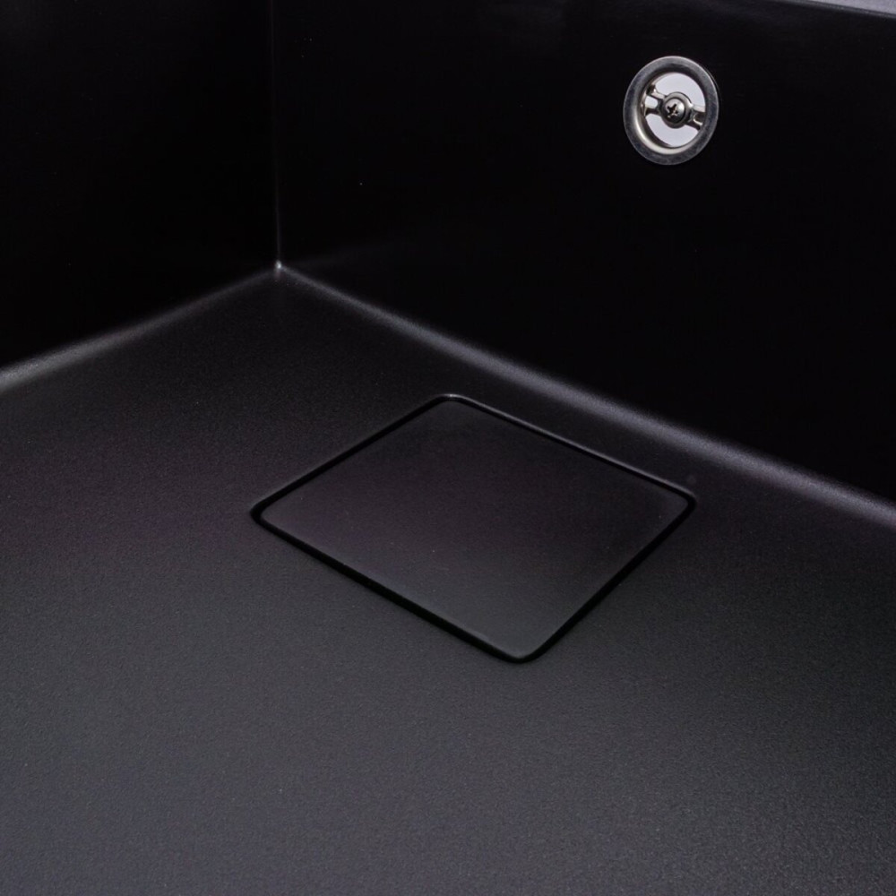 Благодаря глубокой чаше удобно мыть даже габаритную посуду, не разбрызгивая воду. Матовая поверхность придаёт элегантность и легко очищается. В стандартной комплектации нет отверстия под смеситель, но мы можем выполнить его по вашему запросу. Крепления входят в комплект.