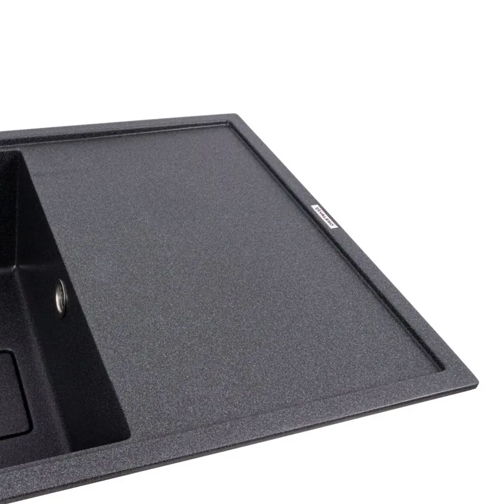 Гранитная кухонная мойка VALESO 7850 GALANS в цвете карбон — это современное и функциональное решение, которое станет центральным элементом вашей кухни. Ее матовая поверхность, глубокий насыщенный цвет и продуманный дизайн с одной основной чашей и сушкой делают ее идеальной для ежедневного использования, сочетая эстетику и практичность.