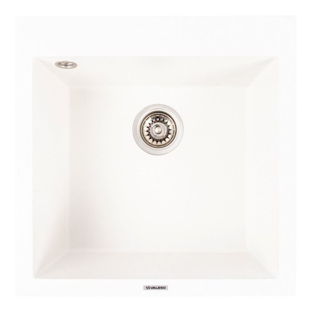 5050 GALAX — стильная квадратная мойка с матовым покрытием в глубоком белоснежном оттенке. Благодаря компактным размерам 500×500 мм эта модель идеально впишется в интерьер небольших или средних кухонь, обеспечивая удобство и функциональность.