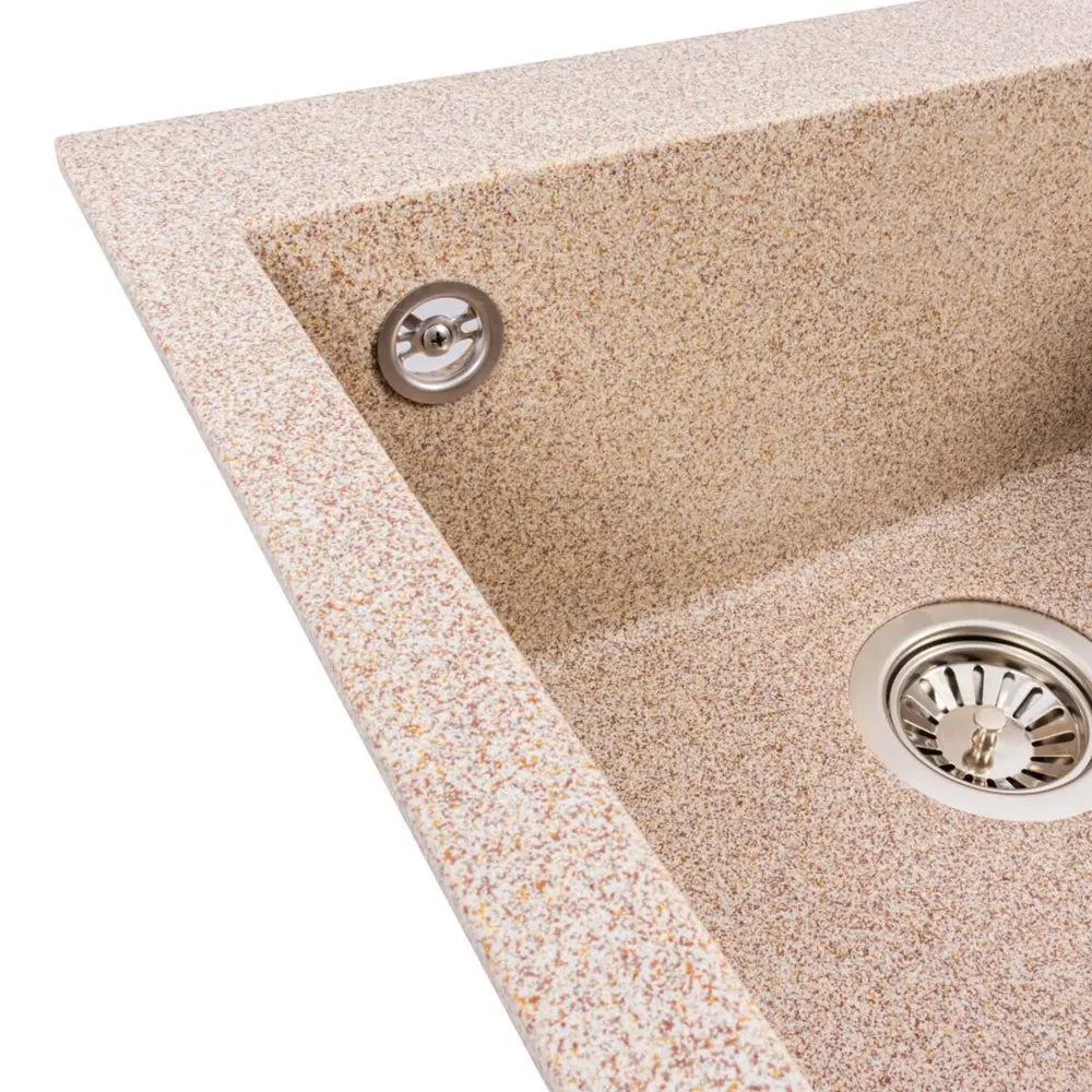 5050 GALAX — компактная гранитная мойка карамельного цвета с матовым покрытием. Благодаря глубокой чаше 200 мм она удобна в ежедневном использовании, а классическая квадратная форма размером 500×500 мм идеально подходит для небольших кухонь, обеспечивая максимум функциональности при ограниченном пространстве. Мойка изготовлена из высококачественного композитного материала на основе гранита, устойчива к механическим повреждениям, высоким температурам и бытовой химии.