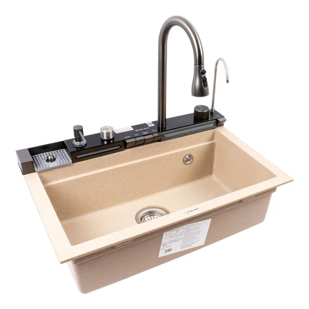 Гранитная матовая мойка VALESO IRENA 6846 сафари — сочетание стиля, надежности и функциональности. Компактный, но вместительный размер 682×460 мм отлично впишется в современную кухню.