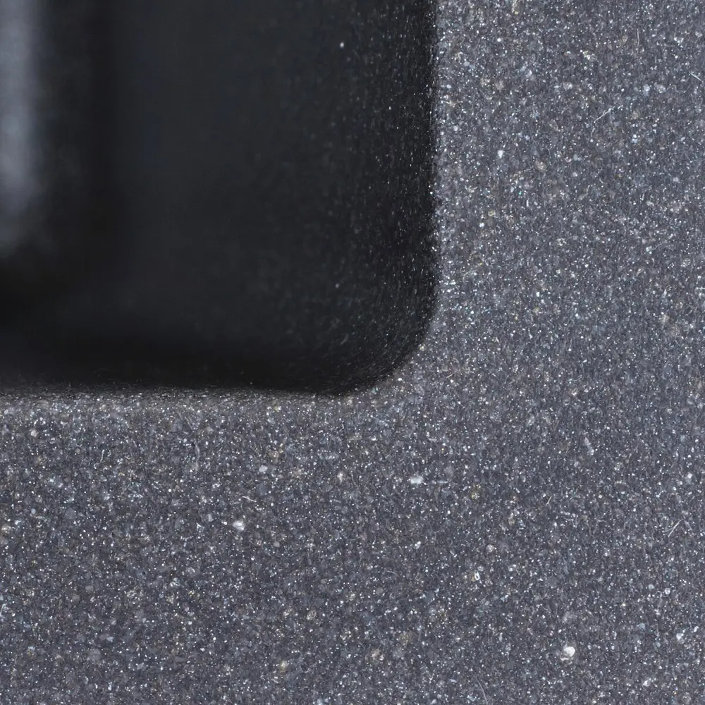 Мойка на 80% состоит из кварца и на 20% из очень жесткой акриловой смолы, благодаря чему неприхотлива в уходе, а также имеет большой запас прочности.