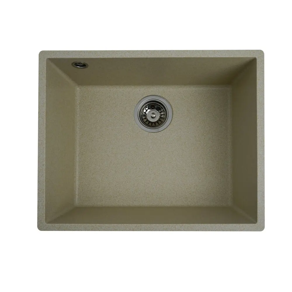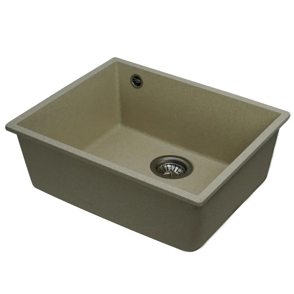 Мойка имеет матовую фактуру и приятный для глаза цвет - песок, что позволяет ей легко вписаться в интерьер кухни.
