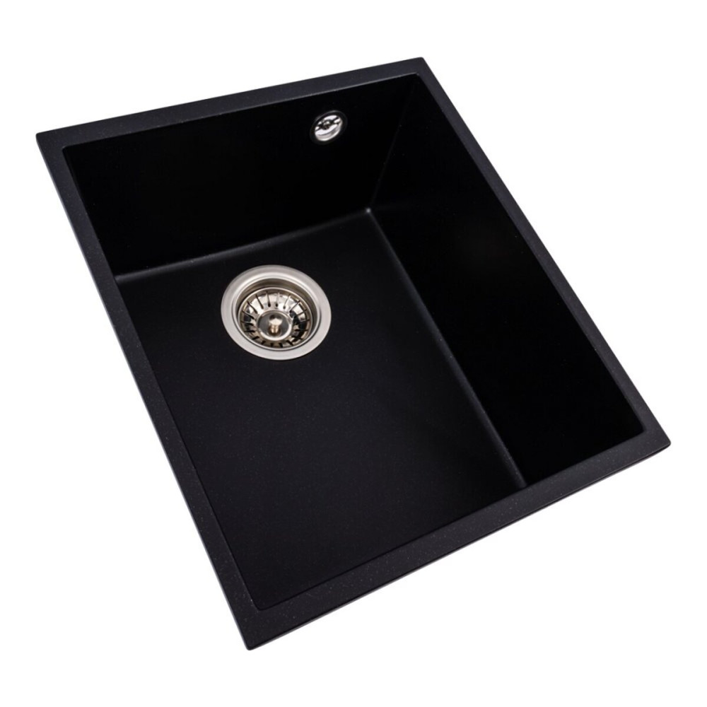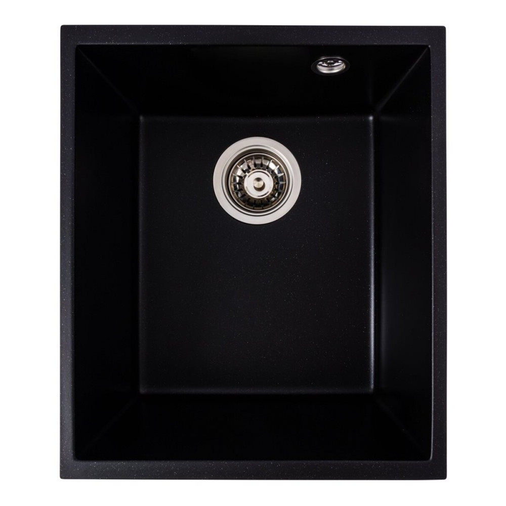 Мойка имеет матовую фактуру и приятный для глаза цвет – черный, что позволяет ей легко вписаться в интерьер кухни.