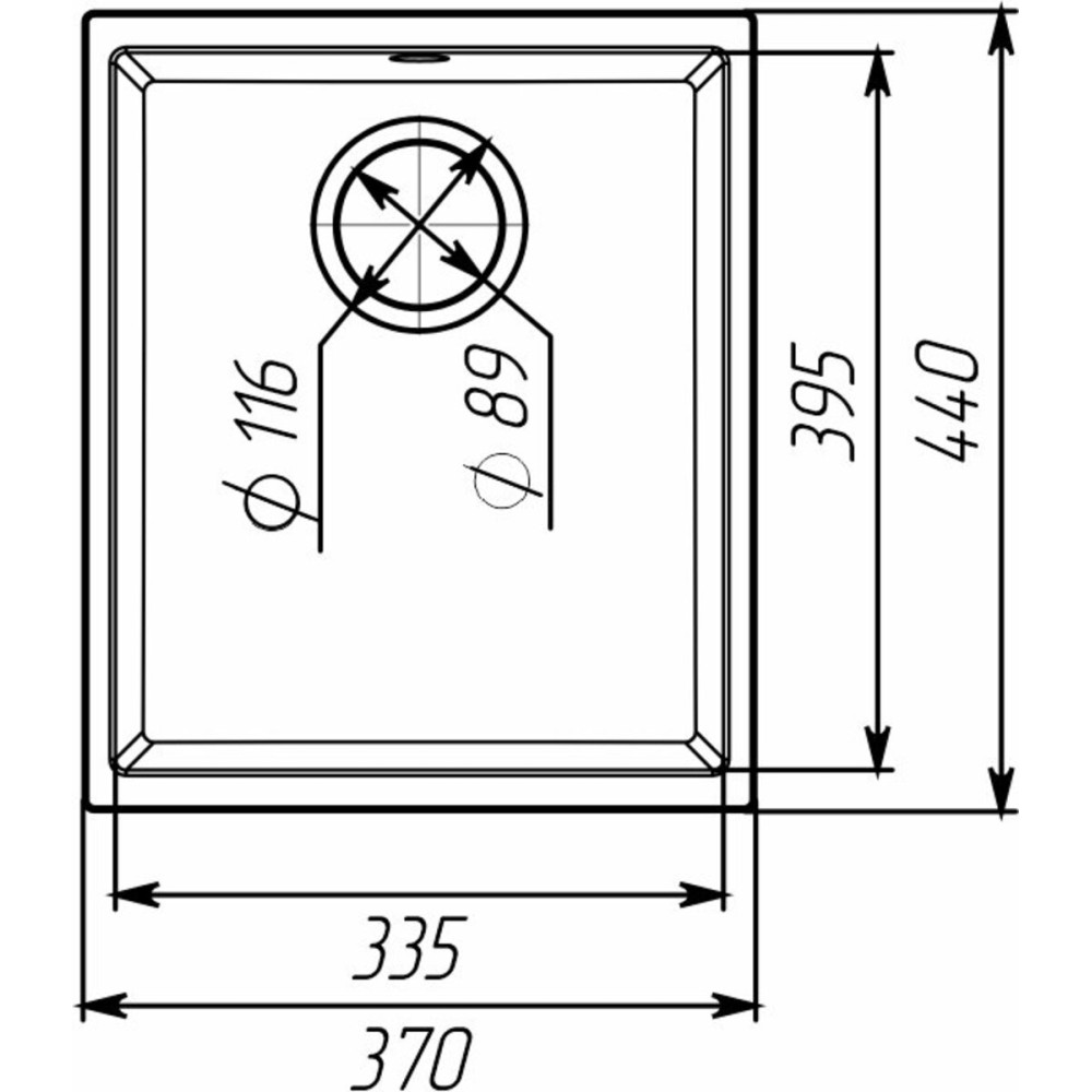 Размер мойки: 370х440х200
