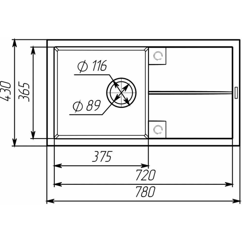 Размер мойки 780х435х200мм делает ее идеальным для любой кухни, а размер чаши 343х370х200мм обеспечит комфорт при использовании. Мойка имеет врезной дизайн для безупречного сочетания с вашей столешницей, придавая вашей кухне стильность и оригинальность.
