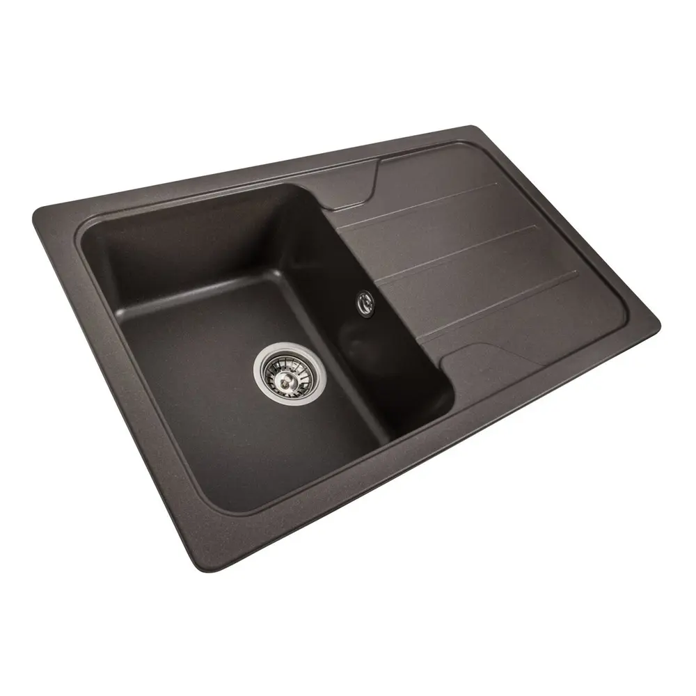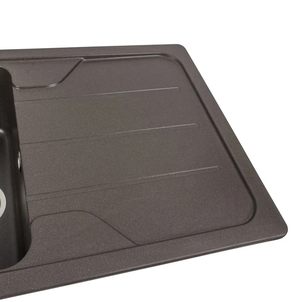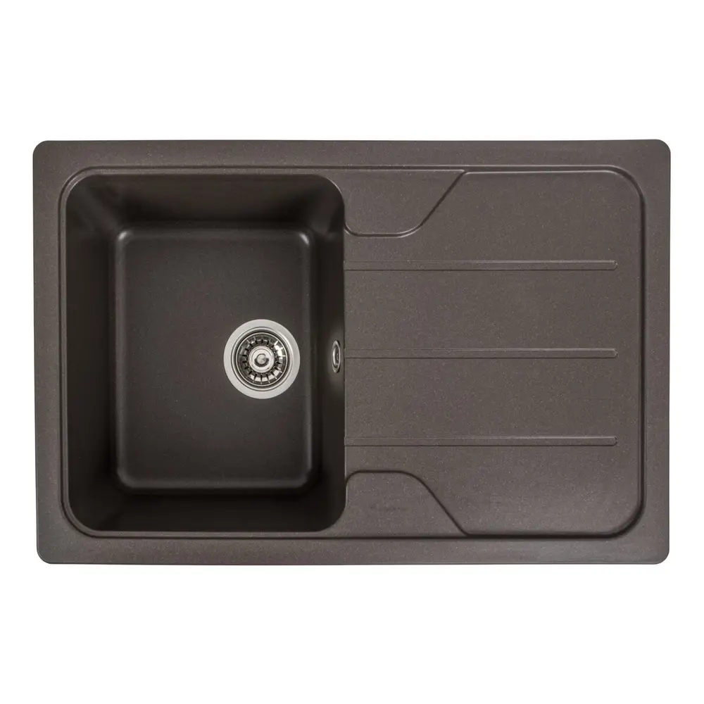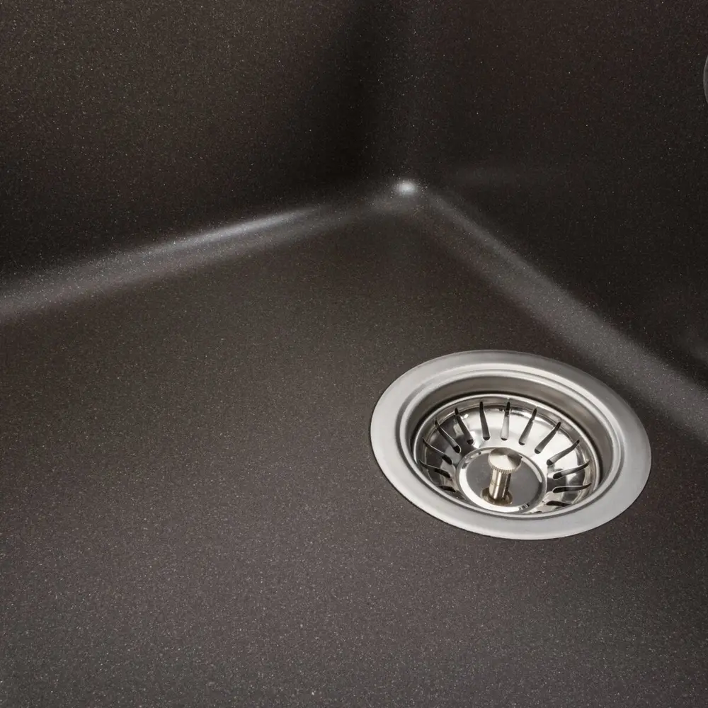 Мойка имеет матовую фактуру и приятный для глаза цвет - темная скала, что позволяет ей легко вписаться в интерьер кухни.
