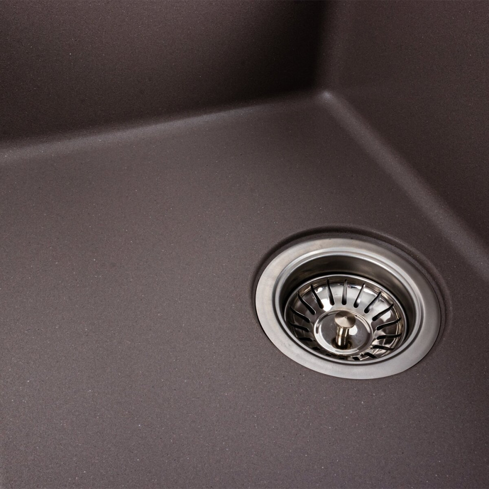 Мойка оборудована одной чашей, крыло с правой стороны придает удобства и практичности в ежедневном использовании. Матовая поверхность мойки придает ей загадочность и элегантность. Цвет карбон всегда в тренде и придает интерьеру современный и стильный вид.