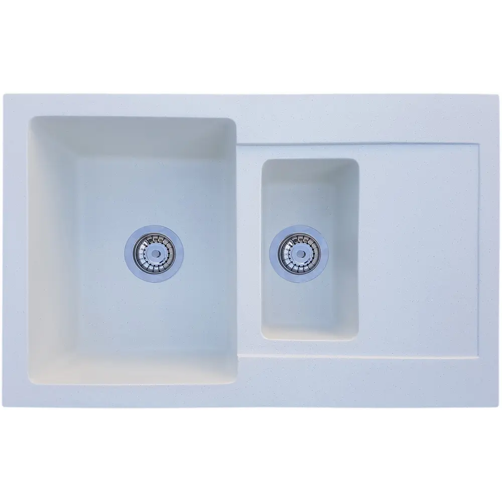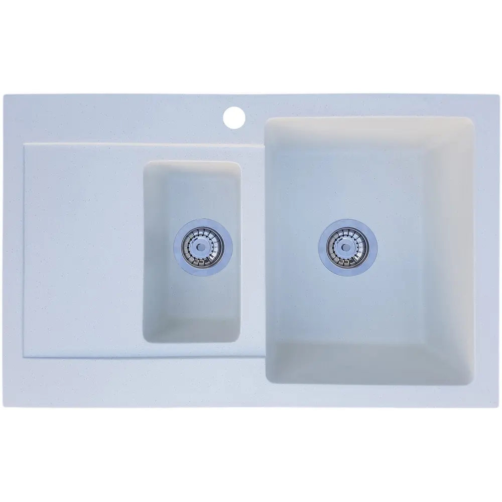 Мойка с дополнительной чашей Valetti Europe модель №34 белая, общим размером 790х500х190 мм, прямоугольной формы, с чашами: основная размером 325х420х175 мм, дополнительная 155х290х145 мм. Фирменная гарантия 5 рокив.Подвийна гранитная мойка украинского-итальянского производства большого розмиру.Видминно помещается в распространенные кухонные тумбы длиной 800 мм.Мае две независимые друг от друга чаши в которых можно делать несколько различных процессов одночасно.Конструкция предусматривает отведение набранной воды из чаши в чашу во избежание ее выливания за пределы вироби.Стийка до краске и красящим речовинампродуктам, падения предметов и високимнизьких температур.Легка в уборке. Ничего не впитывает. Бесшумная в эксплуатации. Имеет надежные стенки 15 мм завтовшки.Безкоштовно делается отверстие под смеситель, если потрибно.Виробництво расположенный в городе Запорожье, откуда и осуществляется доставка Новой почтой или Деливери непосредственно покупателю. Услуга платная. По тарифам перевизника.Оплату делаете при получении товара или на карту Приват.