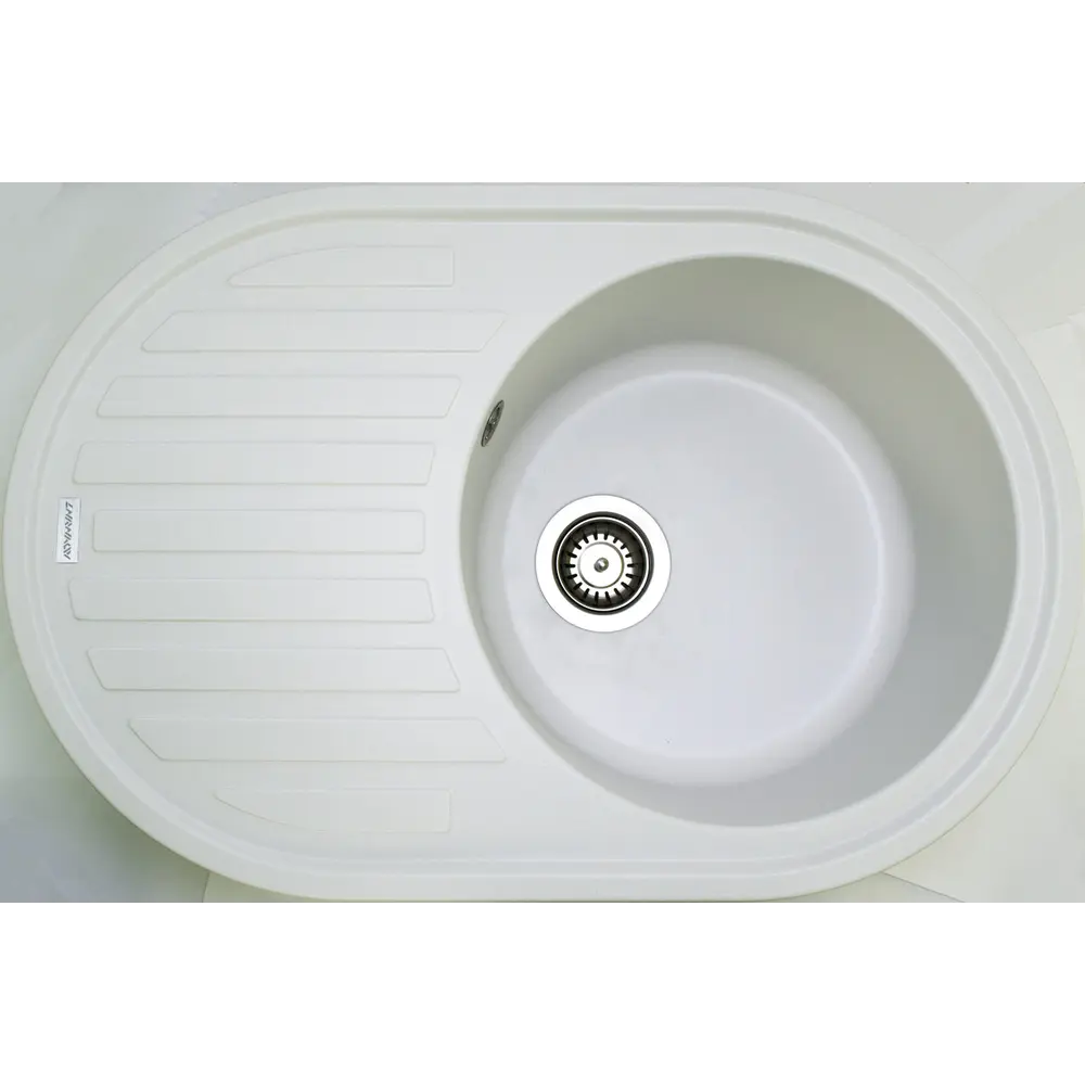 Гранітна мийка ADAMANT ELLIPSIS, виконана з міцного високотехнологічного екологічно чистого матеріалу, що складається з 80% кварцового піску, гранітної крихти, мармурової крихти і 20% з'єднують смол. Мийка гранітна жаростійка і витримує до +280 С, а так само стійка до ударів, подряпин, барвником елементам. Мийка гранітна ADAMANT - дуже містка і глибока. Її розміри - 770x500 мм і глибина - 200 мм.Кераміческіе мийки зроблені за технологією SOLID SURFACE - технологія виготовлення виробів на основі поліефірної смоли високої якості і спеціально підготовлених натуральних наповнювачів без використання гелькоутной поверхні. У складі використовуються кварцові піски високої якості і імпортні з'єднують смоли. Всі матеріали відносяться до безпечних з медичної точки зору. Продукція виготовлена за даною технологією має високу стійкість до впливу більшості кислот, лугів та інших активних хімічних реагентів. Крім того штучний камінь гігієнічний в слідстві відсутності пір, віруси і бактерії не мають можливості розмножуватися на поверхні, так само кам'яна поверхню приглушує звуки падаючої води і відрізняється простотою в догляді. При цьому виріб мають високу міцність (поверхня стійка до механічних поврежденіям- ударам кухонної техніки, подряпин від столових приладів), термостійкість і мають привабливий зовнішній від.Гарантія на нашу продукцію становить 5 років.