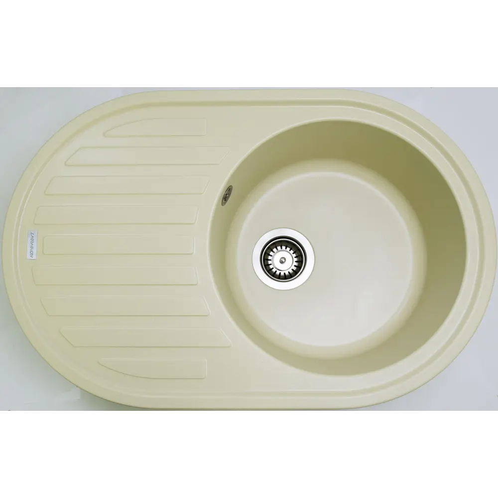 Гранітна мийка ADAMANT ELLIPSIS, виконана з міцного високотехнологічного екологічно чистого матеріалу, що складається з 80% кварцового піску, гранітної крихти, мармурової крихти і 20% з'єднують смол. Мийка гранітна жаростійка і витримує до +280 С, а так само стійка до ударів, подряпин, барвником елементам. Мийка гранітна ADAMANT - дуже містка і глибока. Її розміри - 770x500 мм і глибина - 200 мм.Кераміческіе мийки зроблені за технологією SOLID SURFACE - технологія виготовлення виробів на основі поліефірної смоли і спеціально підготовлених натуральних наповнювачів без використання гелькоутной поверхні. У складі використовуються кварцові піски високої якості. Продукція виготовлена за даною технологією має високу стійкість до впливу більшості кислот, лугів та інших активних хімічних реагентів, крім того штучний камінь гігієнічний в слідстві відсутності пір, віруси і бактерії не мають можливості розмножуватися на поверхні. При цьому виріб мають високу міцність, термостійкість і мають привабливий зовнішній вигляд