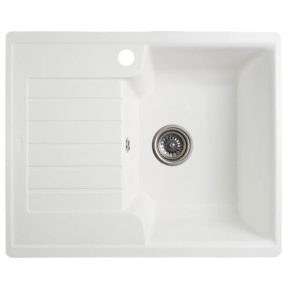 Біла гранітна мийка Valetti Europe модель №12 з однією чашею і крилом для сушіння. Загальний розмір 615*500*195 мм. Чаша з переливом. Отвір під кран. Фірмова гарантія.Детальніше: