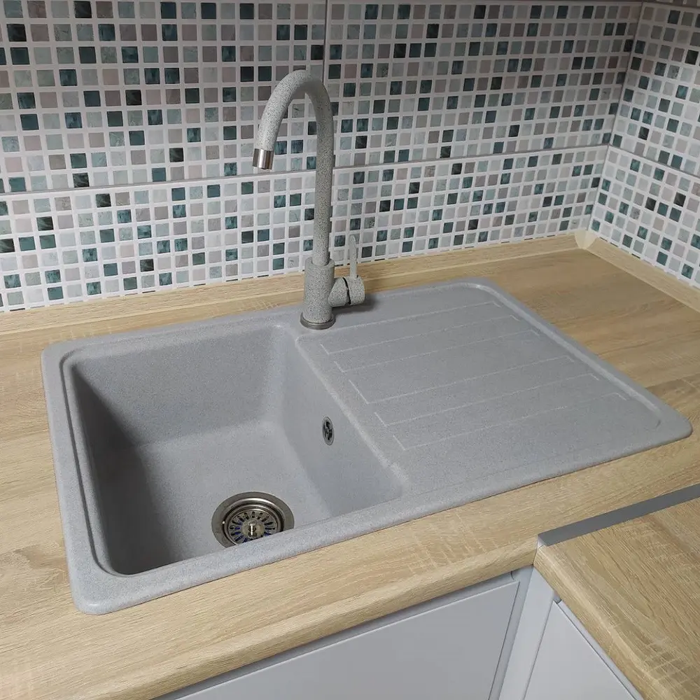 мийка для кухні сірого кольору, граніт, прямокутна Valetti Europe модель №17 з вирізом під змішувач, перелив, просторе крило і об'ємна чаша.Виробляється модель на сучасному українсько-італійському заводі відкритому в 2008 році в Запоріжжі.Така мийка зроблена за технологією "мультиброня", коли матеріал нанесений шар за шаром для підвищення надійності і міцності.Легко переносить побутові навантаження. Стійка до падіння предметів, барвним речовинам і температур.Офіційна заводська гарантія на п'ять років.Покупець може вибирати розташування чаші і крила або можна залишити універсальної.Відправка по Новій пошті, з заводу. Платна послуга.Оплата при отриманні або на картку Приват.