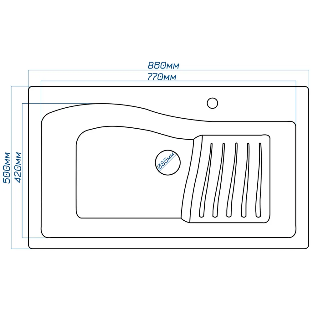Ширина чаші мийки, мм