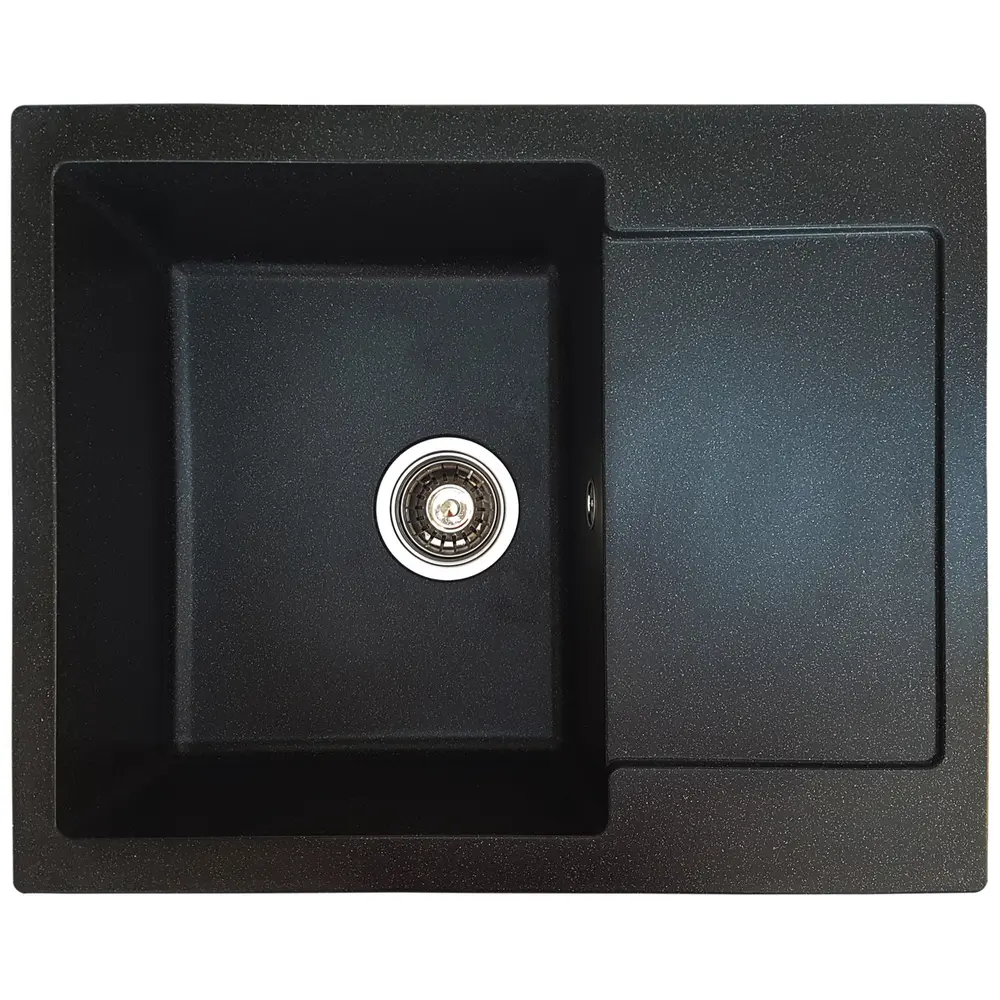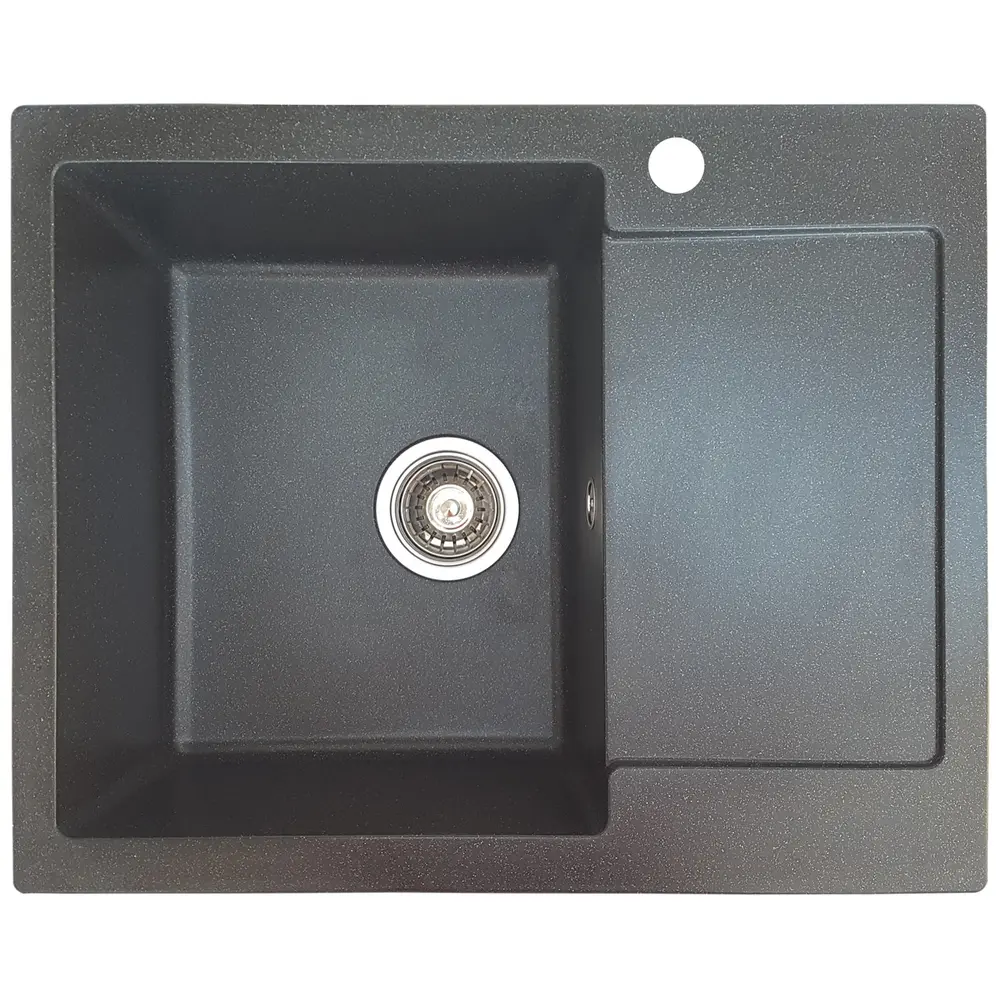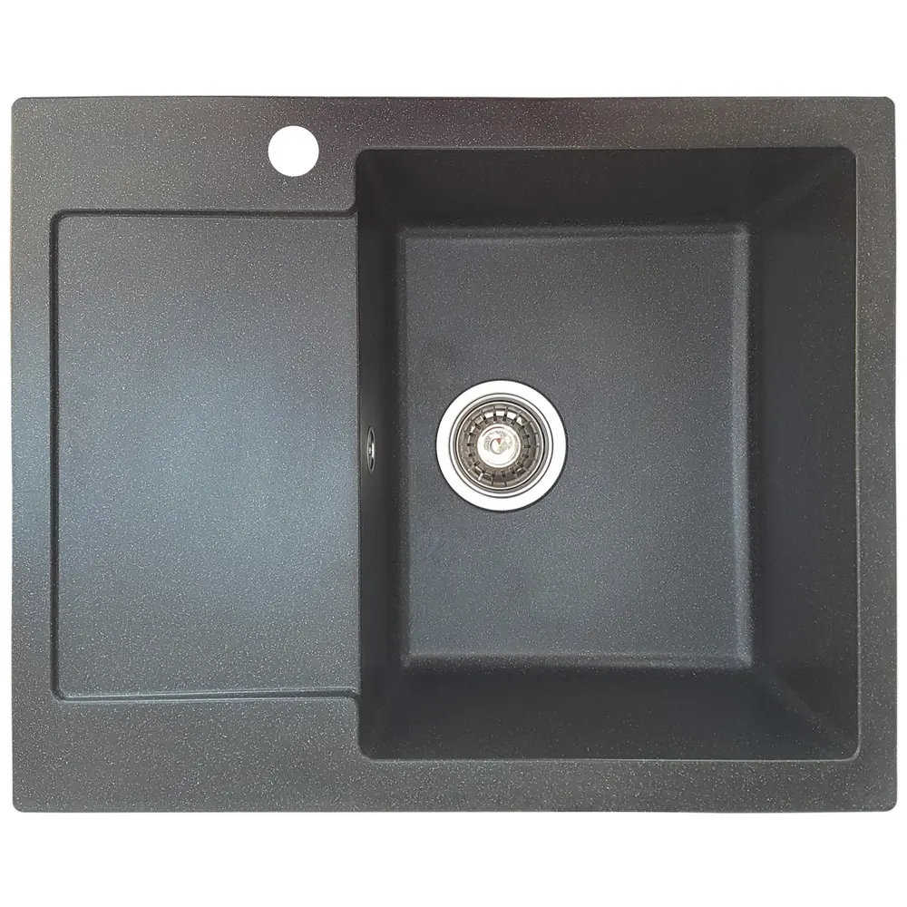 Чорна мийка, гранітна, з вибором розташування чаші і крила, з переливом та глибокою чашею Valetti Europe модель №26, загальний розмір моделі становить 62*50*22 див.Модель прямокутної мийки з вирізом отвори під змішувач за бажанням покупця. Має круглий перелив, розташований на бічній стінці об'ємної і зручною у використанні чаші. Є поличка для сушіння посуду. Якість продукції забезпечується тривалої п'ятирічною гарантією виробника - українсько-італійського заводу в Запоріжжі, відкритого в 2008 році.Стійка до будь-яких навантажень в побуті.Доставка в заводській упаковці з ребрами жорсткості, для збереження вантажу. Новою поштою. За додаткову плату. По місту Запоріжжя доставка безкоштовна на адресу покупця.Крім цього кольору модель виробляється ще в чотирьох: білому, сірому, бежевому і пісочному
