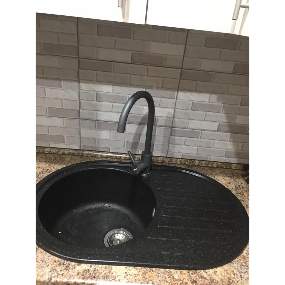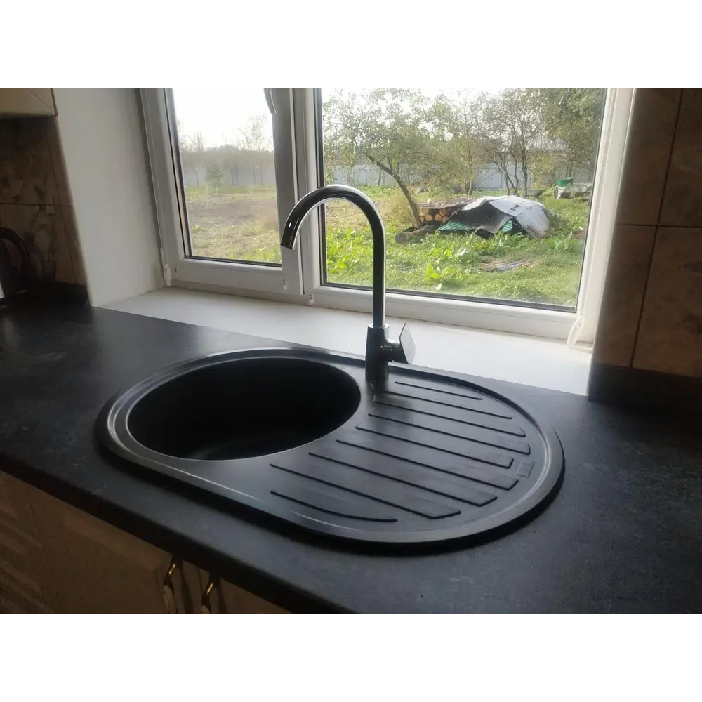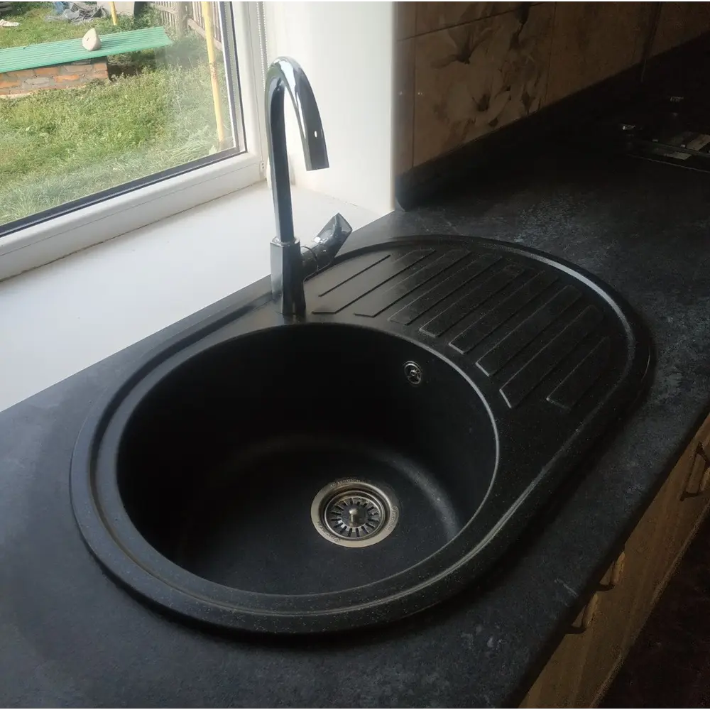 Чорна гранітна мийка Valetti Europe модель №27 - відмінна якість за розумною ціною. Розмір виробу 770х500х210мм, стінки 15 мм, перелив, крило для сушіння посуду, чаша 400 мм. Гарантія 5 років.Як показано на доданих фото отвір під змішувач може розташовуватися з будь-якої сторони або його зовсім може не бути - це робиться за бажанням покупця.Чаша мийки має велику глибину до 195 мм, що дозволяє набирати глибокі ємності водою, вміщувати багато посуду і перешкоджати розбризкуванню води.Товсті стінки роблять роботу більш тихої, поглинаючи шум від води і від посуду.Надійна і міцна. Виробляється за технологією "Мультиброня", коли шари матеріалу наносять один за одним, один на одного. Стійка до падінь предметів, подряпин, плям фарби, термічним шоків.Зручна, простора поличка для сушіння посуду.Центр зливу спеціально зміщений, щоб поставлена зверху посуд мала менше шансів повністю його перекрити.При відправці запечатується в фірмову картонну коробку з ребрами жорсткості для більш безпечного транспортування.Відправка Новою поштою у будь-який населений пункт України. Платно.Для жителів Запоріжжя, де і розташований завод, доставка по місту безкоштовна.Оплата товару відбувається при його отриманні або на картку Приват.