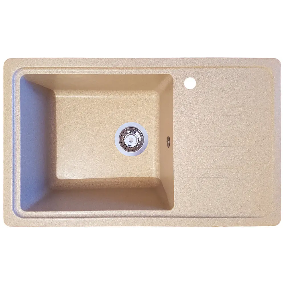 мийка для кухні Valetti Europe модель №63 бежевого кольору з однією чашею і сушкою для посуду. Загальний розмір 710х435х210 мм. Прямокутна. Врізна в стільницю. З отвором під кран (за бажанням). Фірмова гарантія 5 років.Модель характеризується досить місткою чашею з круглим переливом в ній.Колір беж.Проведена на українсько-італійському заводі в Запоріжжі.Стійка до всіх видів забруднень, температурі і падіння предметів.Має товсті стінки по 15 см, що забезпечують надійність конструкції і прекрасне шумопоглащение.Робиться отвір під змішувач.Надсилається Н.П. або Делівері за рахунок одержувача.Оплата при отриманні або на карту.