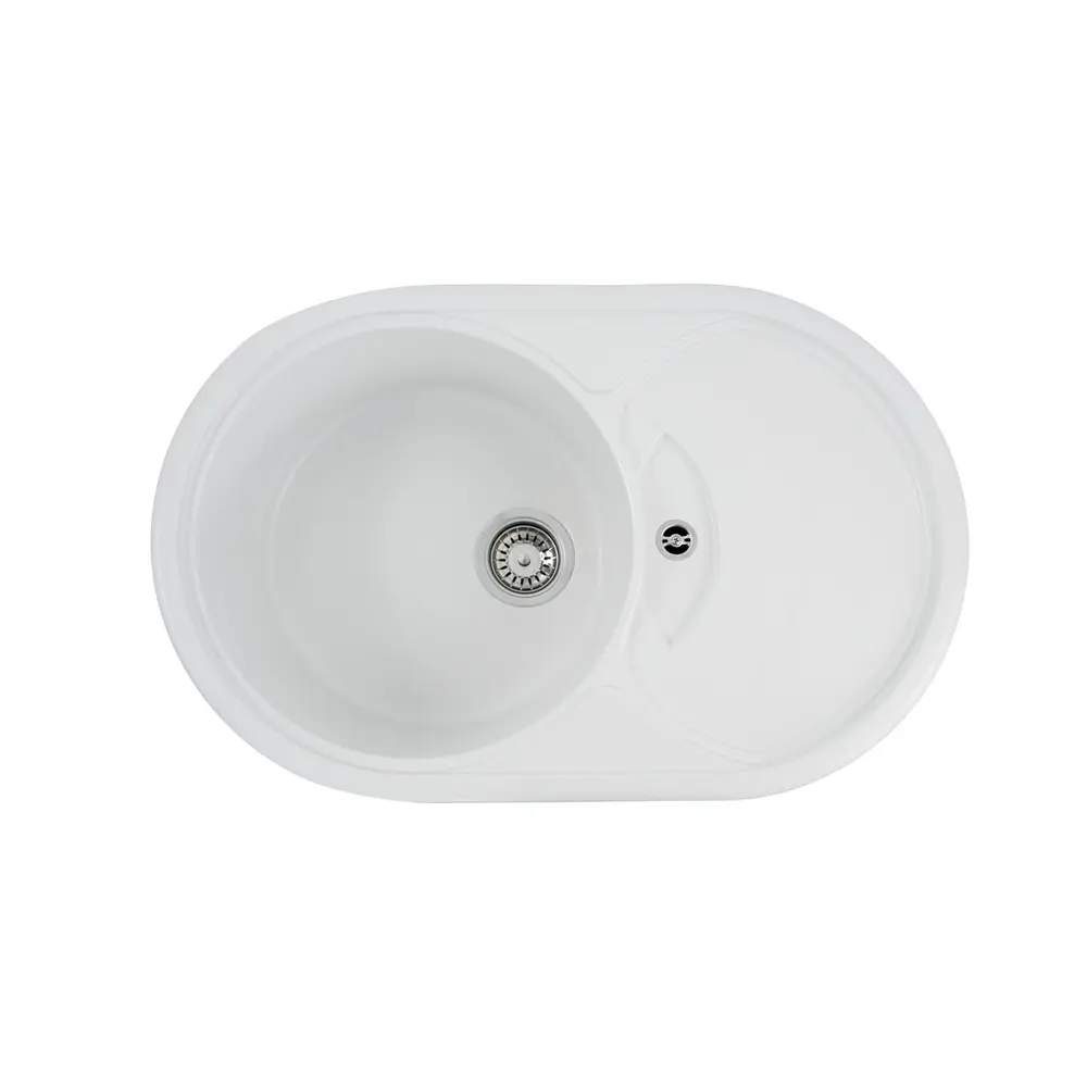 Цвет мойки: белый Модель: 7750 GAZZO Фактура поверхности: глянцевая Размер чаши, мм: 410d Вес (брутто): 14,1 Бренд: PLATINUM Материал ++: гранит Шт. в коробке: 1 шт Ширина мойки, мм: 770 Глубина мойки, мм: 500 Тип установки: на столешницу Наличие чаши / рабочей поверхности (сушки): Одна основная чаша с сушкой Форма мойки: овальная Ширина шкафа для монтажа, см: 76-90 Тип мойки: врезная Комплектация к мойке: силикон Глубина основной чаши, мм: 190 Сифон: Евросифон (широкая горловина, 110 мм) Особенности мойки: Без дополнительных отверстий Гарантия: 5 лет Расположение чаши : Универсальная Размер дополнительной чаши, мм: отсутствует Перелив: верхний Глубина дополнительной чаши, мм: Отсутствует