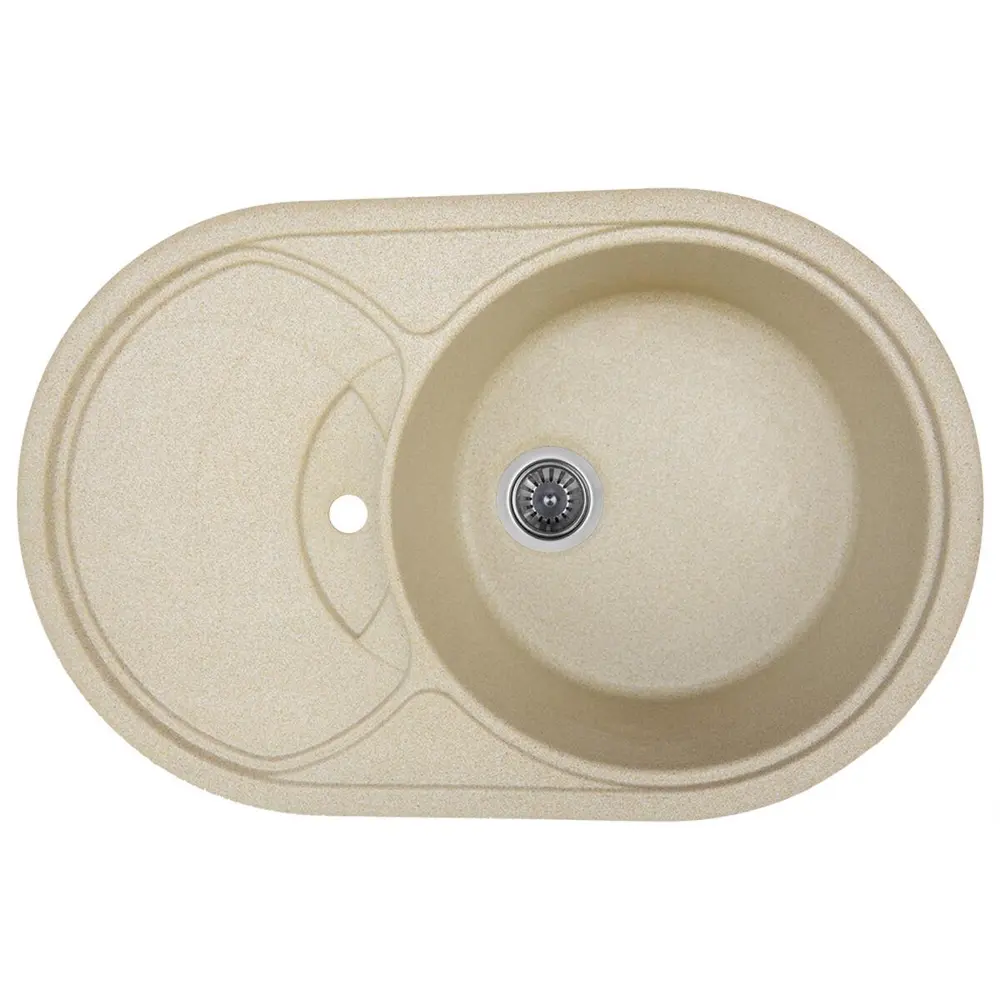 Цвет мойки: бежевый Модель: 7750 GAZZO Фактура поверхности: глянцевая Размер чаши, мм: 410d Вес (брутто): 14,1 Бренд: PLATINUM Материал ++: гранит Шт. в коробке: 1 шт Ширина мойки, мм: 770 Глубина мойки, мм: 500 Тип установки: на столешницу Наличие чаши / рабочей поверхности (сушки): Одна основная чаша с сушкой Форма мойки: овальная Ширина шкафа для монтажа, см: 76-90 Тип мойки: врезная Комплектация к мойке: силикон Глубина основной чаши, мм: 190 Сифон: Евросифон (широкая горловина, 110 мм) Особенности мойки: Без дополнительных отверстий Гарантия: 5 лет Расположение чаши : Универсальная Размер дополнительной чаши, мм: отсутствует Перелив: верхний Глубина дополнительной чаши, мм: Отсутствует