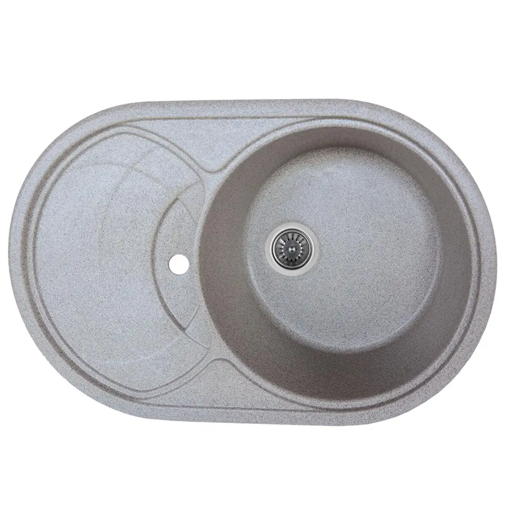 Цвет мойки: серый Модель: 7750 GAZZO Фактура поверхности: глянцевая Размер чаши, мм: 410d Вес (брутто): 14,1 Бренд: PLATINUM Материал ++: гранит Шт. в коробке: 1 шт Ширина мойки, мм: 770 Глубина мойки, мм: 500 Тип установки: на столешницу Наличие чаши / рабочей поверхности (сушки): Одна основная чаша с сушкой Форма мойки: овальная Ширина шкафа для монтажа, см: 76-90 Тип мойки: врезная Комплектация к мойке: силикон Глубина основной чаши, мм: 190 Сифон: Евросифон (широкая горловина, 110 мм) Особенности мойки: Без дополнительных отверстий Гарантия: 5 лет Расположение чаши : Универсальная Размер дополнительной чаши, мм: отсутствует Перелив: верхний Глубина дополнительной чаши, мм: Отсутствует