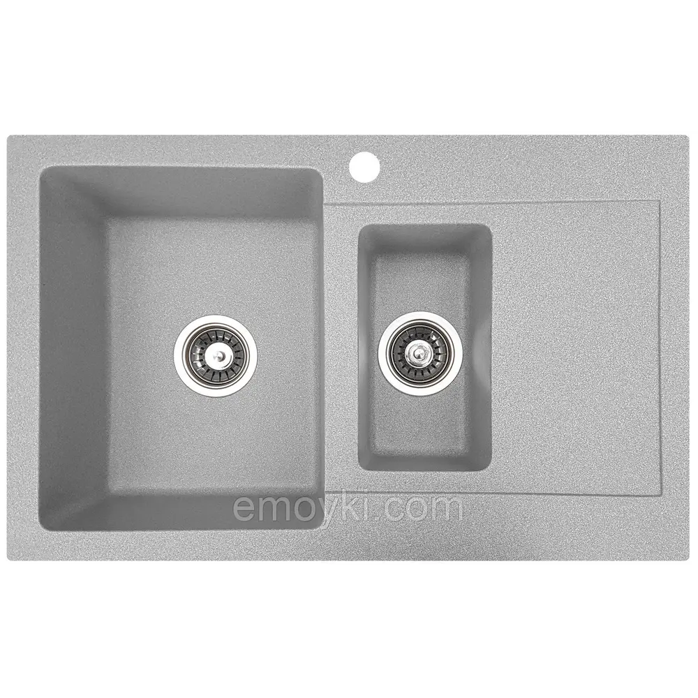 Плита гранітна раковина з додатковою чашею Valetti Europe модель №34 сіра, великий розмір 790х500х190 мм, ідеально під тумбу 800*600 і більше. Вирізаємо отвір під змішувач. Заводська гарантія 5 років.Модель мийки, яка дозволить своєму власникові робити кілька справ одночасно завдяки наявності двох чаш і крила для сушки посуду.Прекрасна якість з тривалої гарантією. Чи не боїться: температур, фарби, падінь предметів. Має товсті 15 мм стінки. Безшумна.Покупець може вибрати один з представлених варіантів розміщення змішувача або залишити мийку без нього.Виробляється на заводі, розташованому в Запоріжжі.Відкрито в 2008 році. Доставка з заводу.За додаткову плату. Новою поштою або Делівері. По Запоріжжю - безкоштовно. На дім.Оплата може здійснюватися як при отриманні товару, так і на карту Приват.