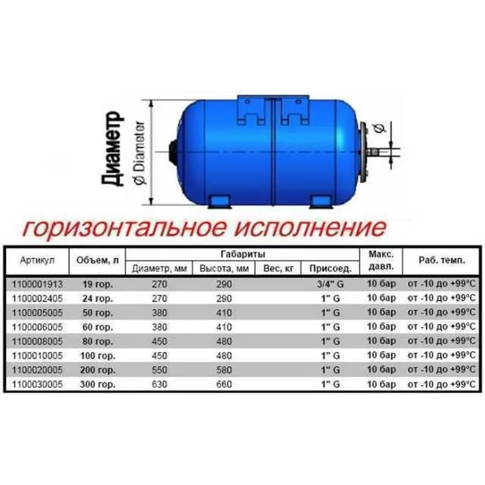 Гідроакумулятор горизонтальний 100 л ZILMET ultra-pro 10 bar