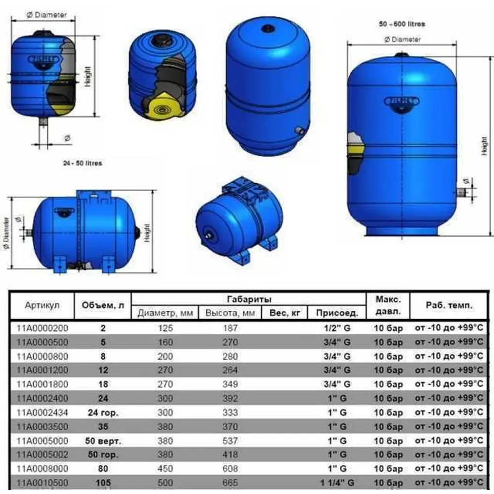- відповідають міжнародним нормам для використання з питною водою ( гідроакумулятори, що постачаються, тестуються на заводі-виробнику і сертифікуються відповідно до вимог European Directive 97/23 / EC) .