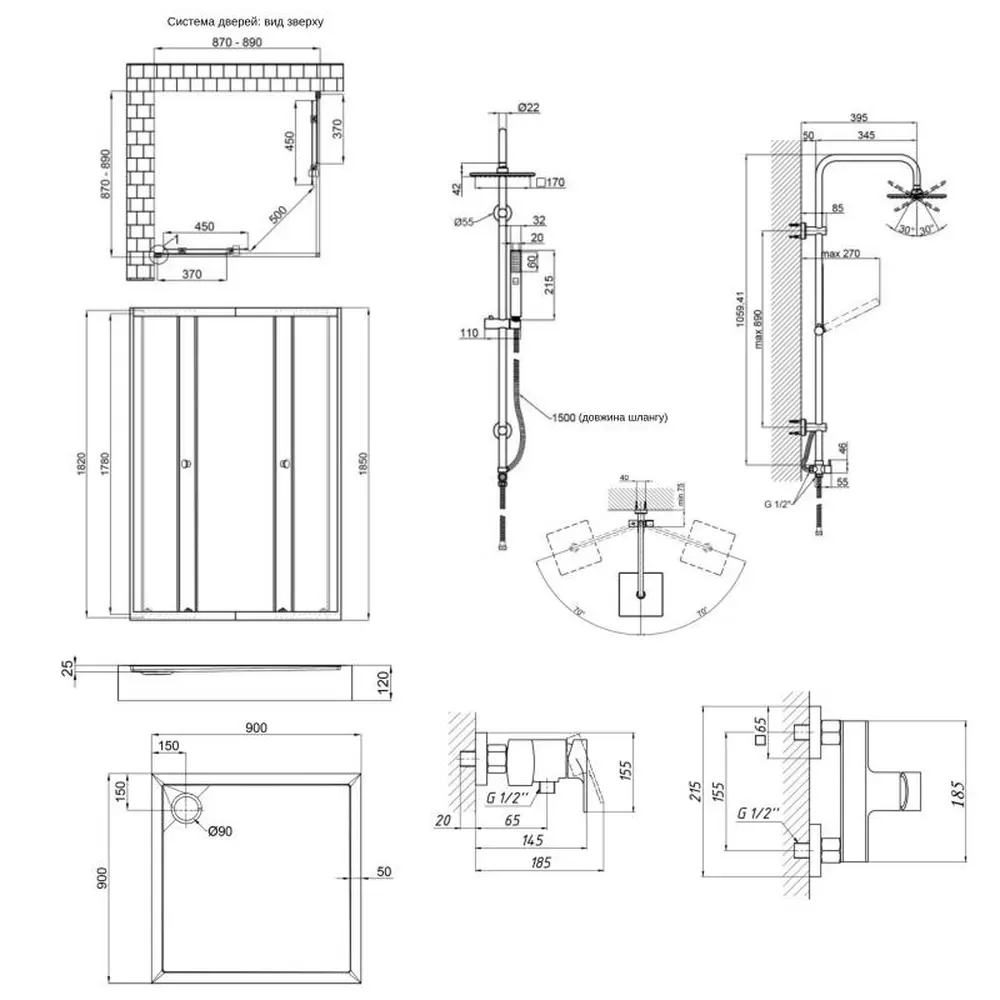 Душова кабіна, піддон, душова система