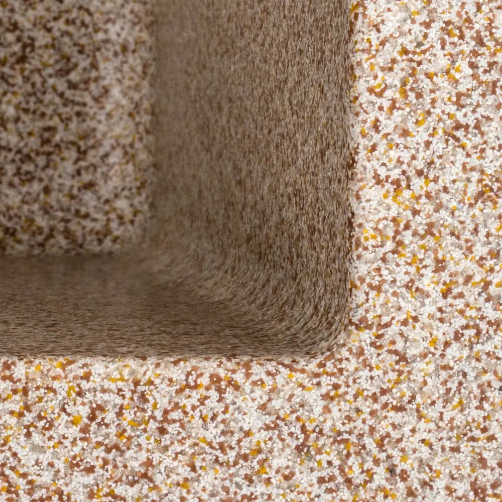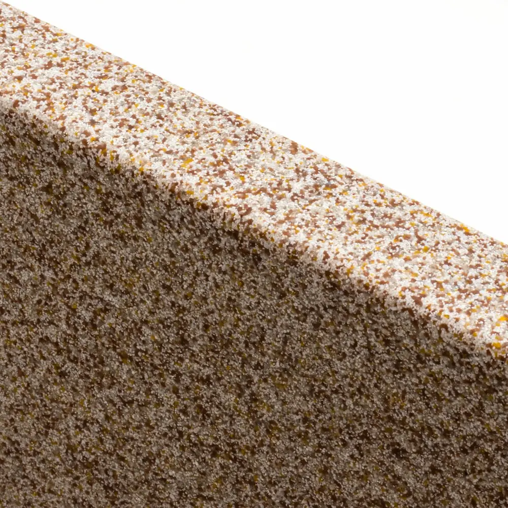 Ця мийка виготовлена за допомогою технології Solid Surface, що гарантує її якість і довговічність. Цей матеріал виготовляється методом лиття, і в ньому поєднуються 80% кварцевого піску та 20% смоли. Візуально він нагадує природний камінь, а його поверхня є теплою і шовковистою на дотик.