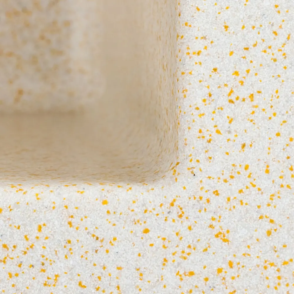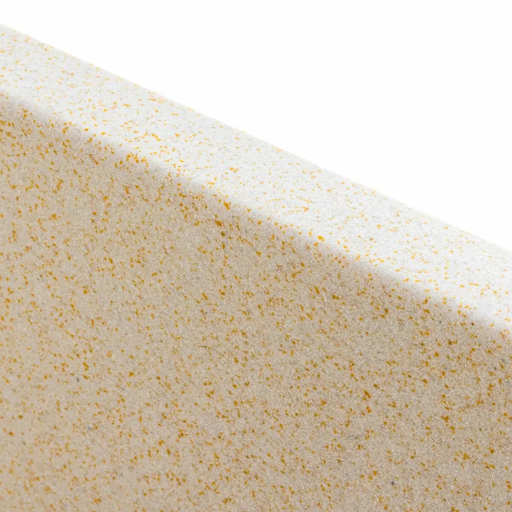 Ця мийка виготовлена за допомогою технології Solid Surface, що гарантує її якість і довговічність. Цей матеріал виготовляється методом лиття, і в ньому поєднуються 80% кварцевого піску та 20% смоли. Візуально він нагадує природний камінь, а його поверхня є теплою і шовковистою на дотик.