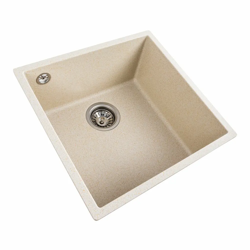 Гранітна мийка для кухні Platinum 4040 RUBA матовий пісок- це вишукане рішення для вашої кухні, яке поєднує в собі стильний дизайн і практичність.