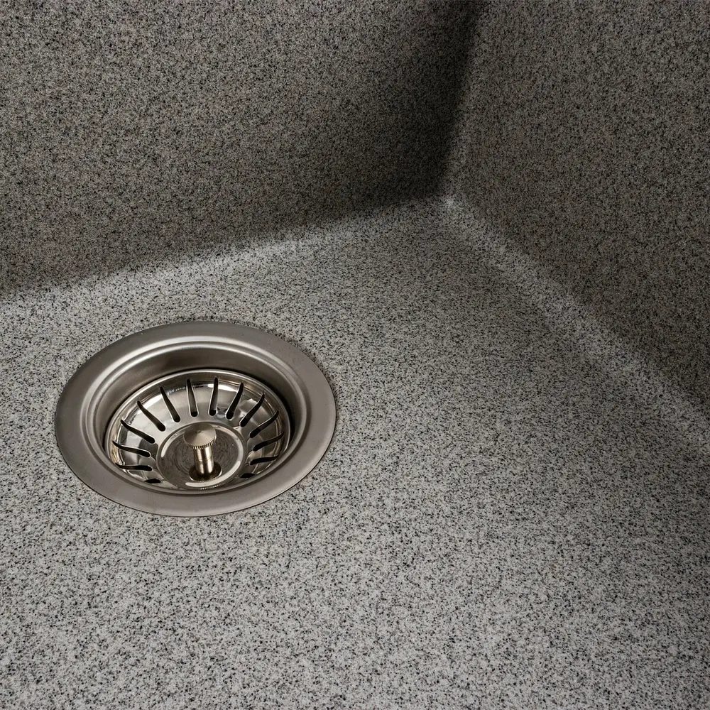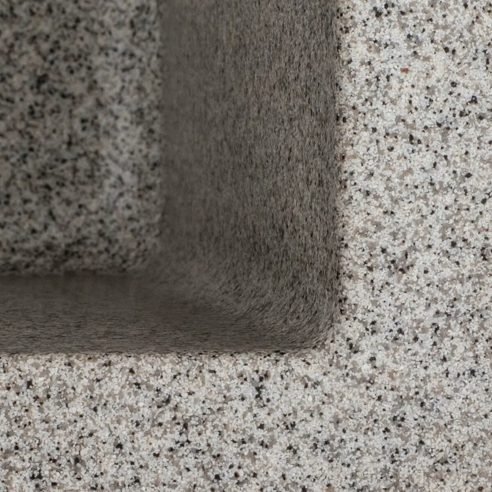 Ця мийка виготовлена за допомогою технології Solid Surface, що гарантує її якість і довговічність. Цей матеріал виготовляється методом лиття, і в ньому поєднуються 80% кварцевого піску та 20% смоли. Візуально він нагадує природний камінь, а його поверхня є теплою і шовковистою на дотик.