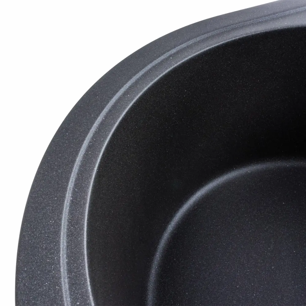 Гранітна мийка для кухні 5847 ONYX українського бренду Platinum - це стильна, врізна, овальна мийка, яка своїм виглядом чудово доповнить дизайн вашої кухні. Мийка на 80% складається з кварцу та на 20% з надзвичайно твердої акрилової смоли, завдяки чому невибаглива у догляді, а також має великий запас міцності. Розміри чаші, 385х385х180 мм, роблять її дуже місткою та зручною у використанні, а наявність відділу для сушіння робить процес миття посуду швидким і легким. Мийка має матову фактуру і приємний для ока колір що дозволяє їй легко вписатися в інтер'єр кухні. Мийка виготовлена в Україні із якісної німецької сировини за технологією Solid Surface з дотриманням усіх необхідних стандартів.