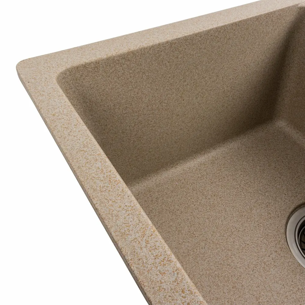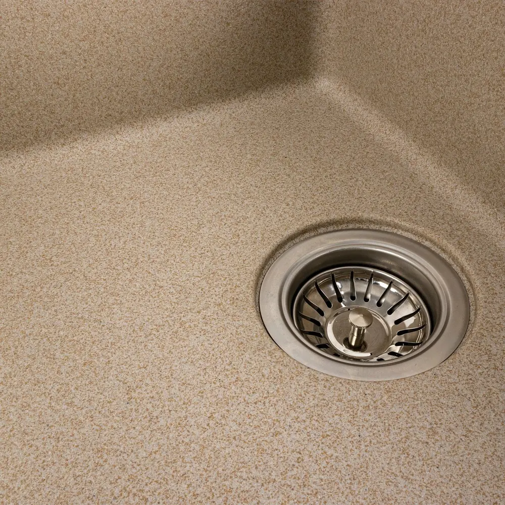 Ця мийка виготовлена за допомогою технології Solid Surface, що гарантує її якість і довговічність. Цей матеріал виготовляється методом лиття, і в ньому поєднуються 80% кварцевого піску та 20% смоли. Візуально він нагадує природний камінь, а його поверхня є теплою і шовковистою на дотик.