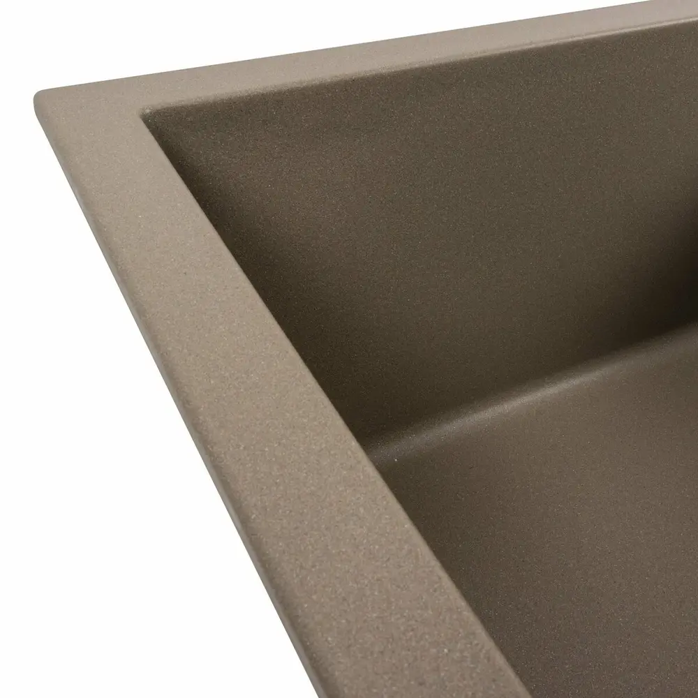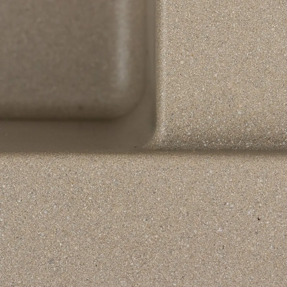 Ця мийка виготовлена за допомогою технології Solid Surface, що гарантує її якість і довговічність. Цей матеріал виготовляється методом лиття, і в ньому поєднуються 80% кварцевого піску та 20% смоли. Візуально він нагадує природний камінь, а його поверхня є теплою і шовковистою на дотик.