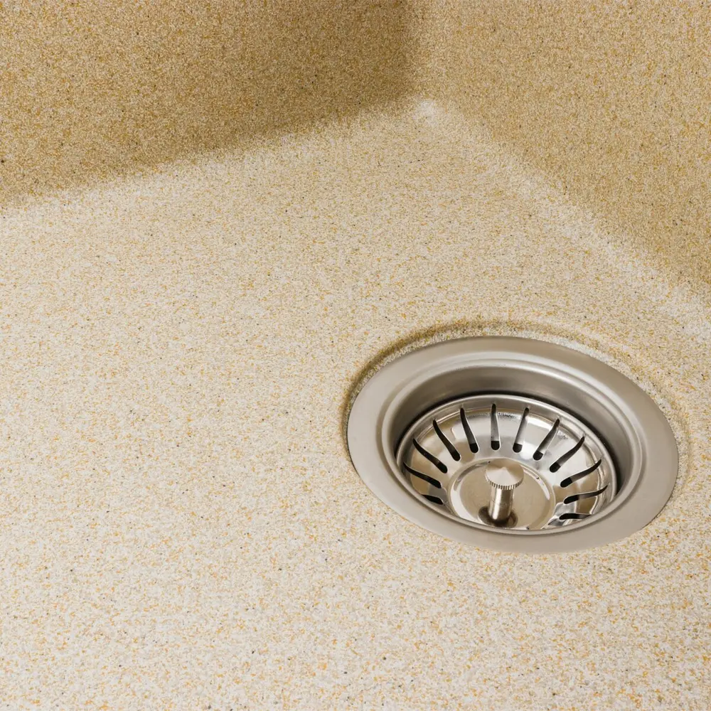 Мийка на 80% складається з кварцу та на 20% з надзвичайно твердої акрилової смоли, завдяки чому невибаглива у догляді, а також має великий запас міцності.