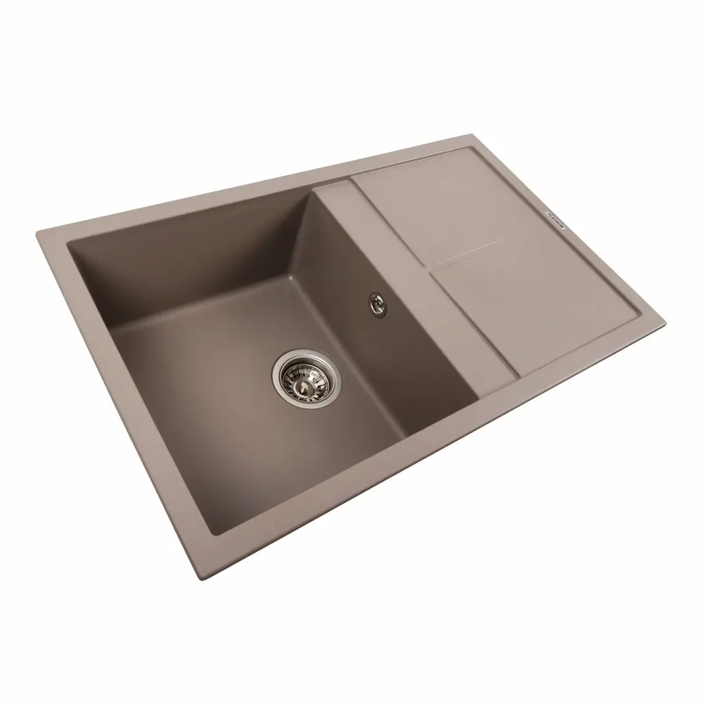 Гранітна мийка для кухні 7950 SELENA українського бренду Platinum - це стильна, врізна, прямокутна мийка, яка своїм виглядом чудово доповнить дизайн вашої кухні. Мийка на 80% складається з кварцу та на 20% з надзвичайно твердої акрилової смоли, завдяки чому невибаглива у догляді, а також має великий запас міцності. Розміри чаші, 377x430x200 мм, роблять її дуже місткою та зручною у використанні. Монтаж здійснюється врізним способом у кухонну шафу шириною не менше 500 мм. Мийка має матову фактуру і приємний для ока колір-Дюна що дозволяє їй легко вписатися в інтер'єр кухні. Мийка виготовлена в Україні із якісної німецької сировини за технологією Solid Surface з дотриманням усіх необхідних стандартів.