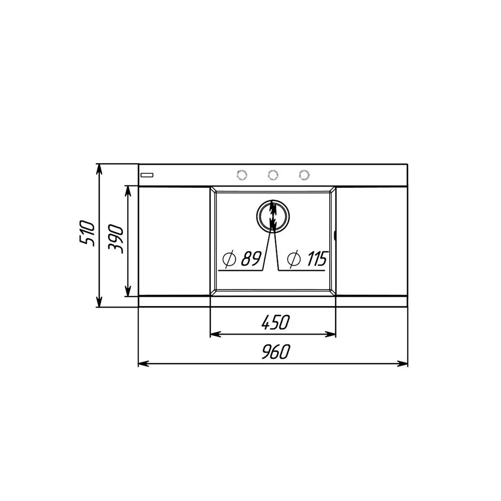 З розмірами шириною 960 мм і довжиною 510 мм, висотою 210 мм ця мийка робить прекрасний вибір для різних кухонь. Квадратна форма надає їй сучасний вигляд, а її розміри дозволяють ефективно використовувати простір навіть у невеликих кухнях.Розмір чаші 450х390х210