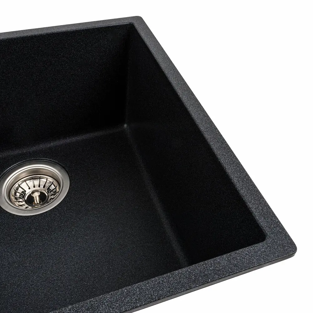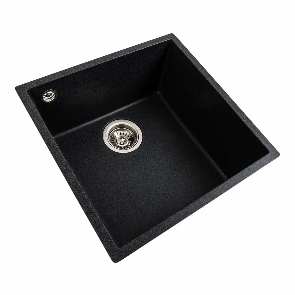 Гранітна мийка для кухні VALESO 4040 RUBA матовий карбон- це вишукане рішення для вашої кухні, яке поєднує в собі стильний дизайн і практичність.