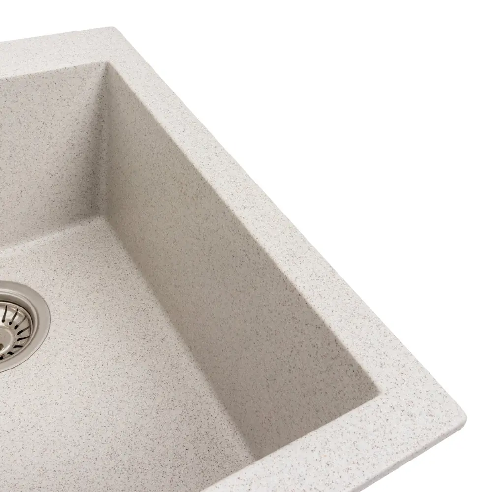 Гранітна мийка для кухні 4150 SOKIL українського бренду VALESO - це стильна, врізна, прямокутна мийка, яка своїм виглядом чудово доповнить дизайн вашої кухні. Мийка на 80% складається з кварцу та на 20% з надзвичайно твердої акрилової смоли, завдяки чому невибаглива у догляді, а також має великий запас міцності. Мийка має матову фактуру і приємний для ока колір, що дозволяє їй легко вписатися в інтер'єр кухні. Мийка виготовлена в Україні із якісної німецької сировини за технологією Solid Surface з дотриманням усіх необхідних стандартів.