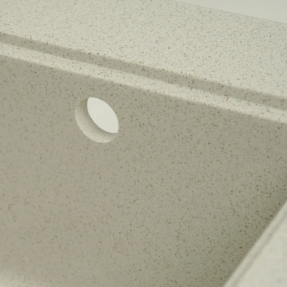 Мийка на 80% складається з кварцу та на 20% з надзвичайно твердої акрилової смоли, завдяки чому невибаглива у догляді, а також має великий запас міцності.