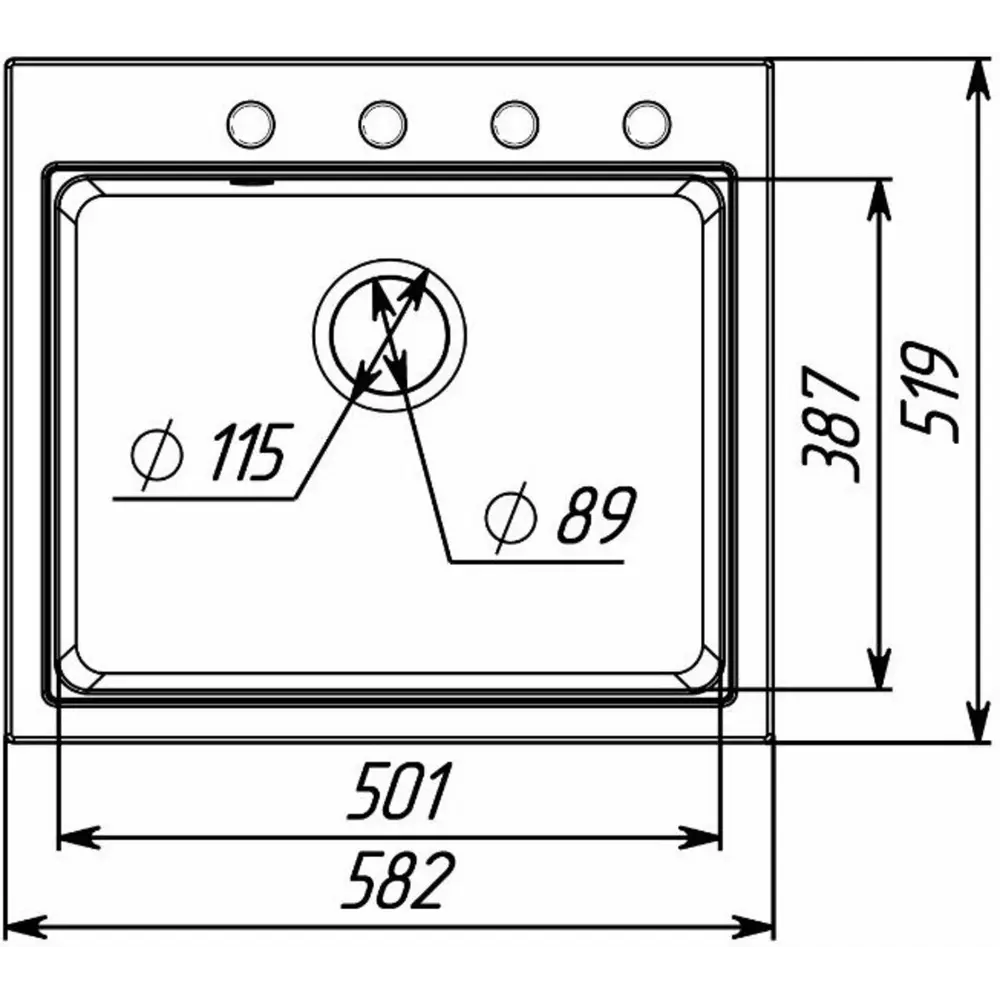 Розміри мийки – 582х519х210 мм, вага – 13,2 кг, сифон – євросифон з широкою горловиною, 110 мм.