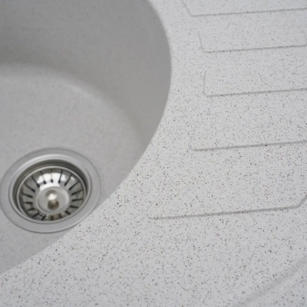 Мийка на 80% складається з кварцу та на 20% з надзвичайно твердої акрилової смоли, завдяки чому невибаглива у догляді, а також має великий запас міцності.