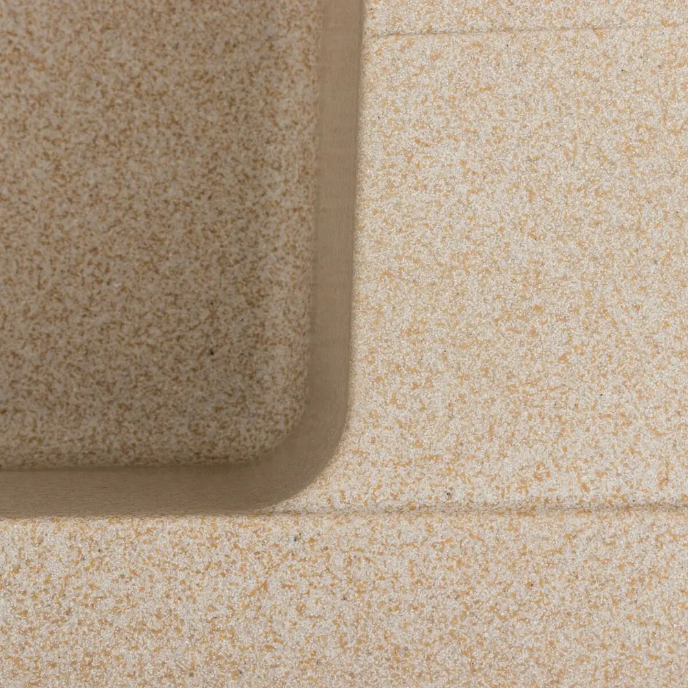 Ця мийка виготовлена за допомогою технології Solid Surface, що гарантує її якість і довговічність. Цей матеріал виготовляється методом лиття, і в ньому поєднуються 80% кварцевого піску та 20% смоли. Візуально він нагадує природний камінь, а його поверхня є теплою і шовковистою на дотик.