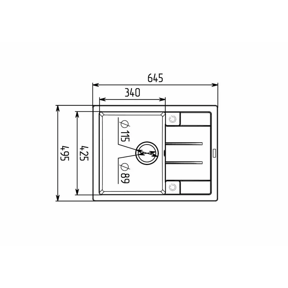 Розміри мийки – 645х495х200 мм, вага – 11 кг, сифон – євросифон з широкою горловиною, 110 мм.