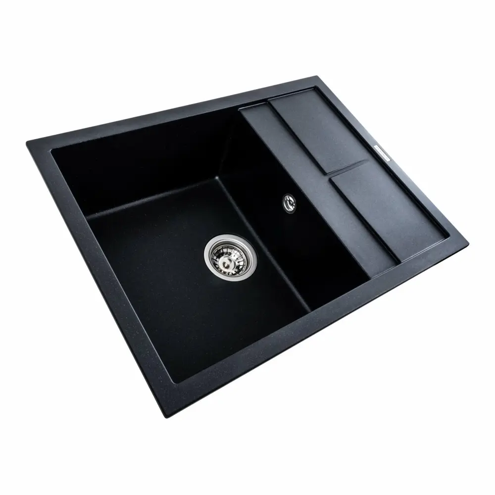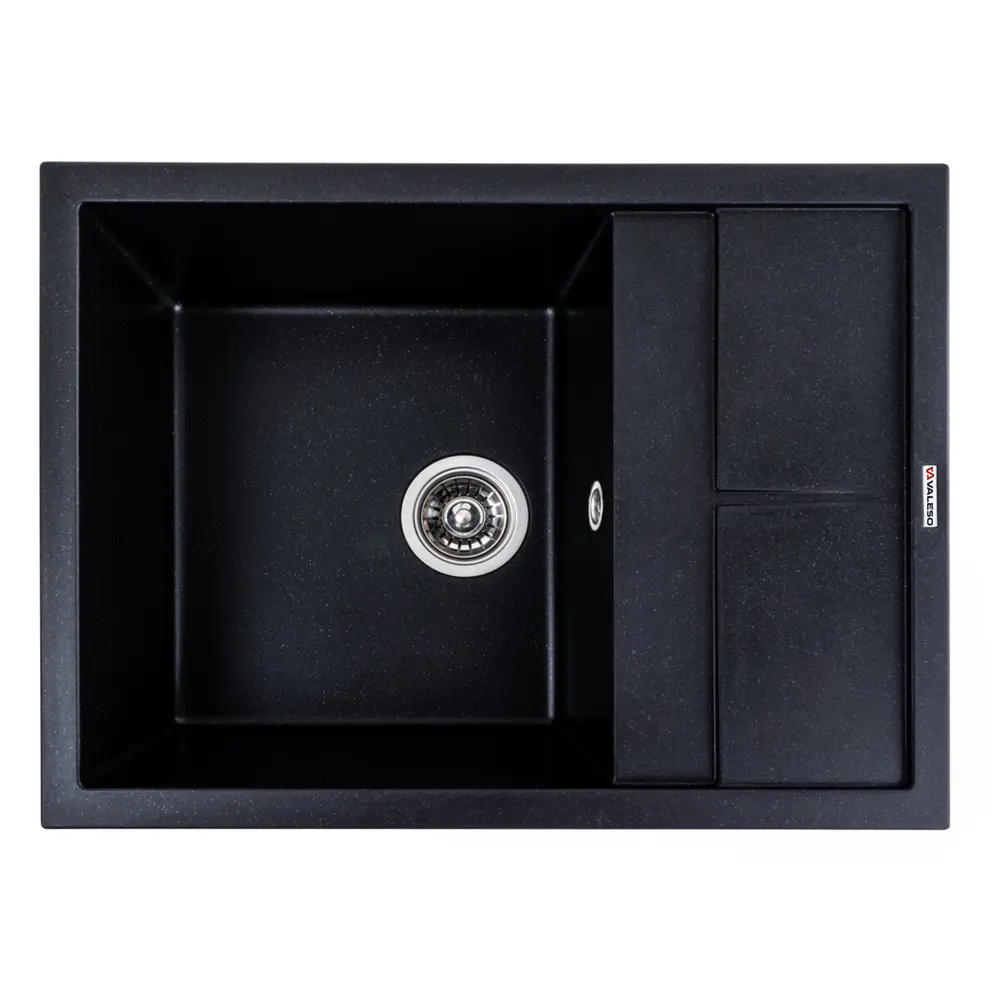 Гранітна мийка для кухні VALESO 6550 LOTOS матовий Чорний металік - це вишукане рішення для вашої кухні, яке поєднує в собі стильний дизайн і практичність.