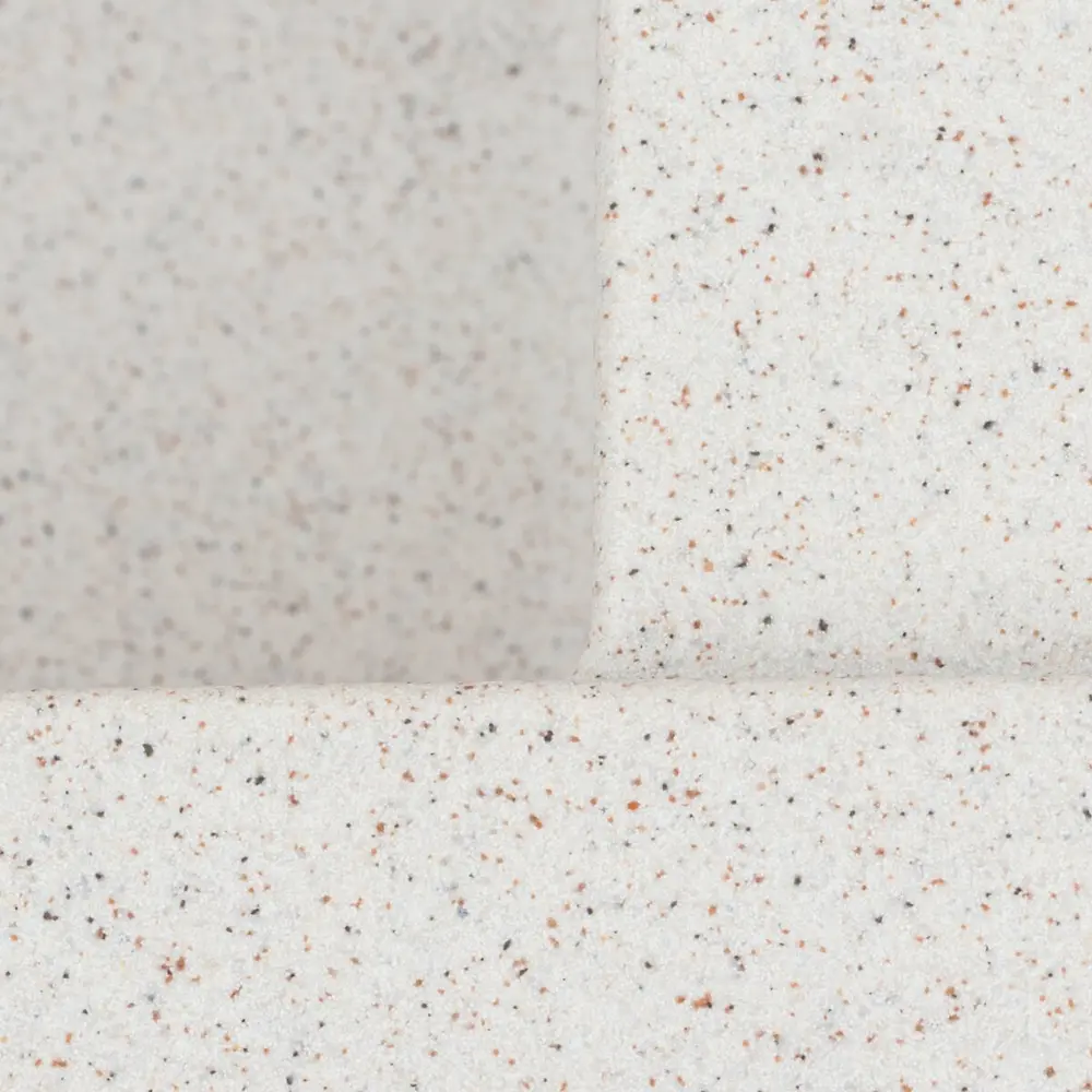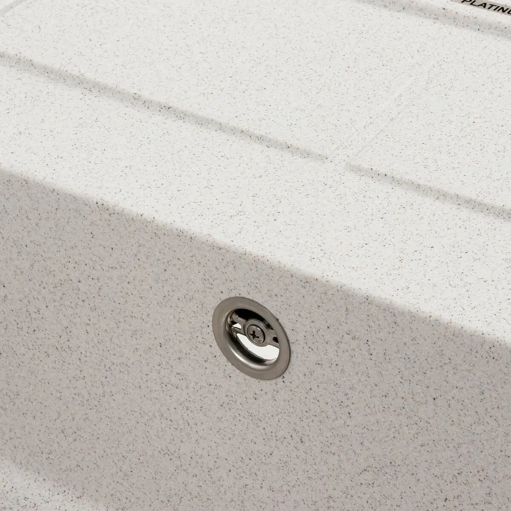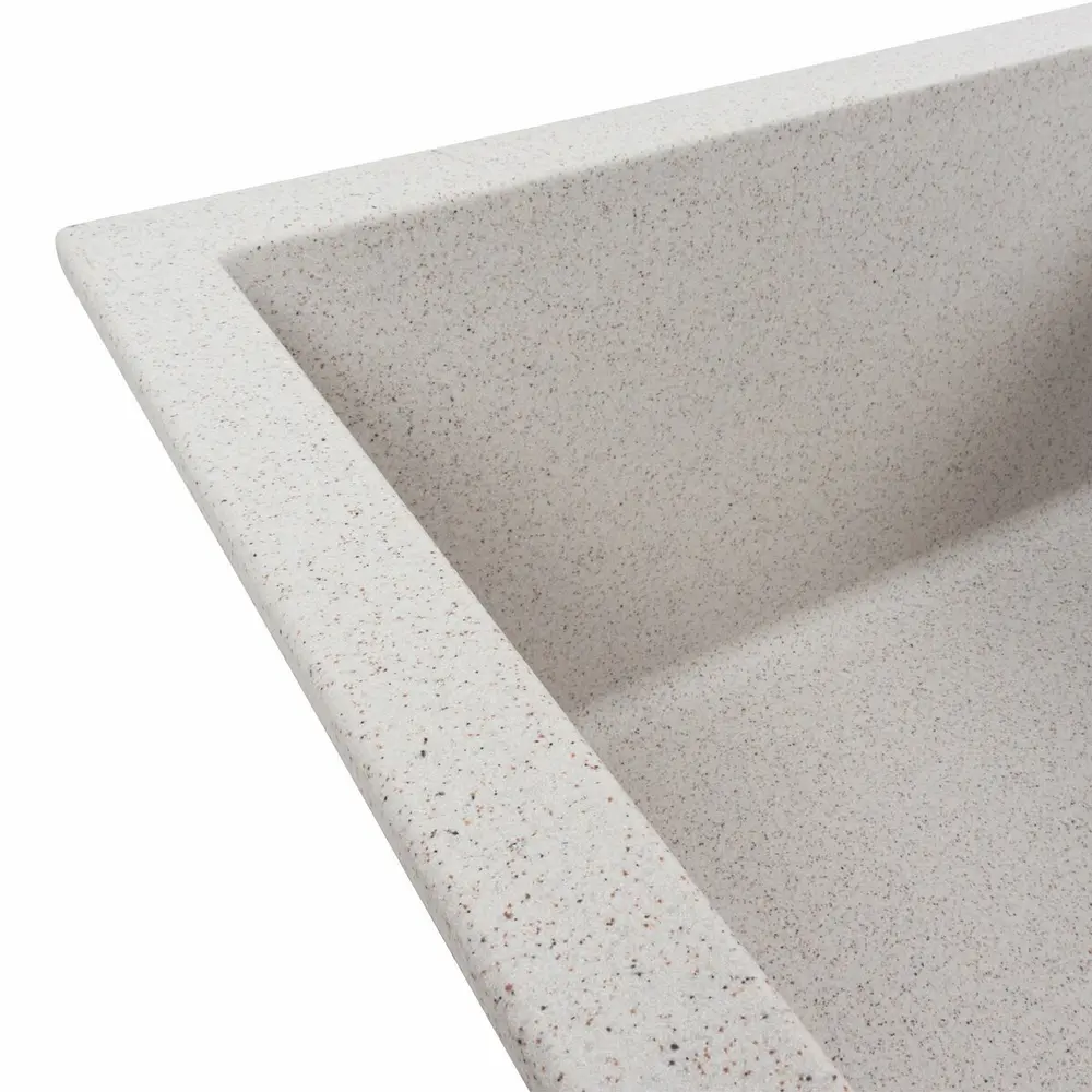 Ця мийка виготовлена за допомогою технології Solid Surface, що гарантує її якість і довговічність. Цей матеріал виготовляється методом лиття, і в ньому поєднуються 80% кварцевого піску та 20% смоли. Візуально він нагадує природний камінь, а його поверхня є теплою і шовковистою на дотик.
